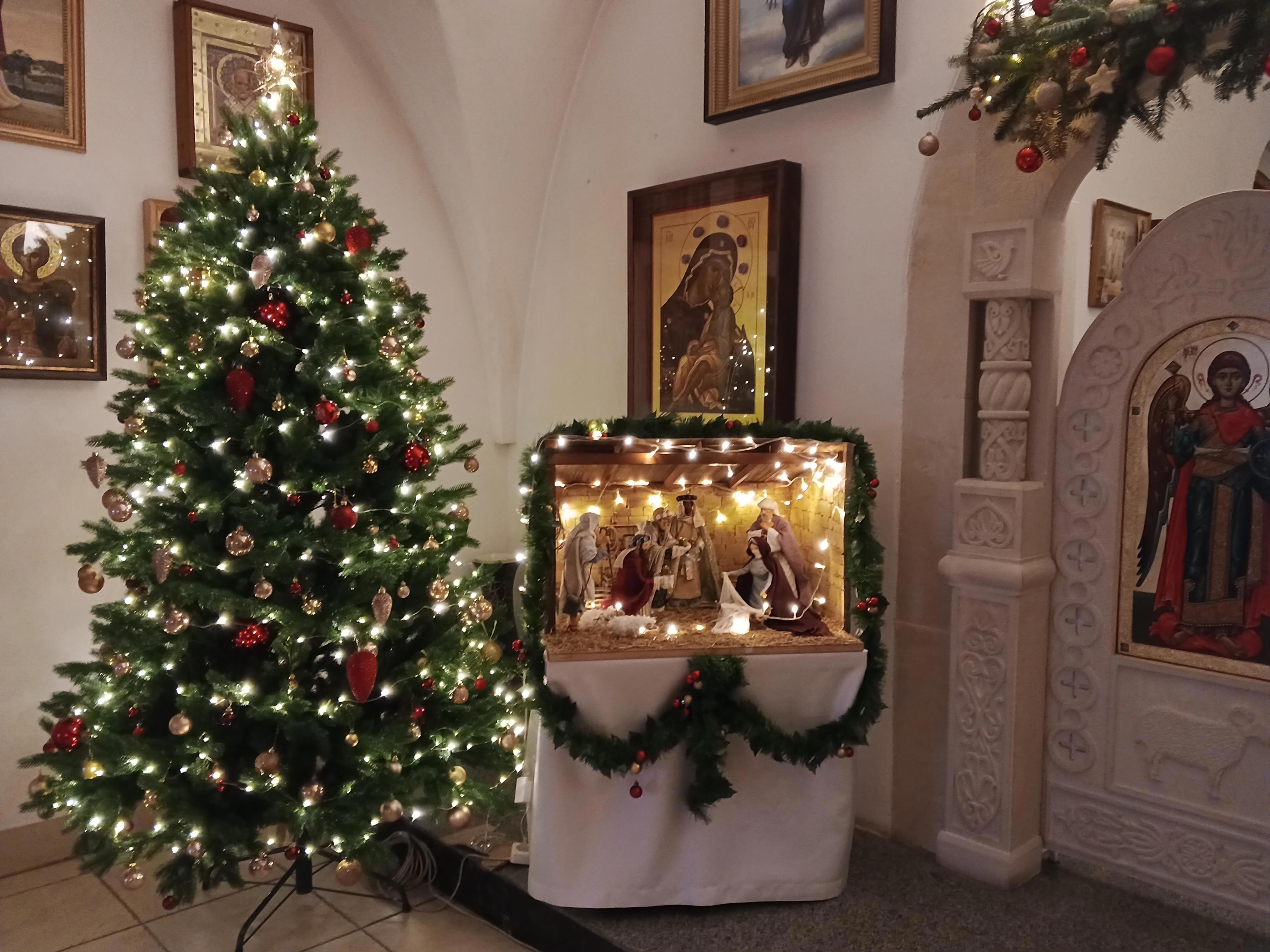 А затем мы дошли до церкви святой Магдалины. Там тоже есть вертеп, но он расположен в самой церкви, как и ёлочка.