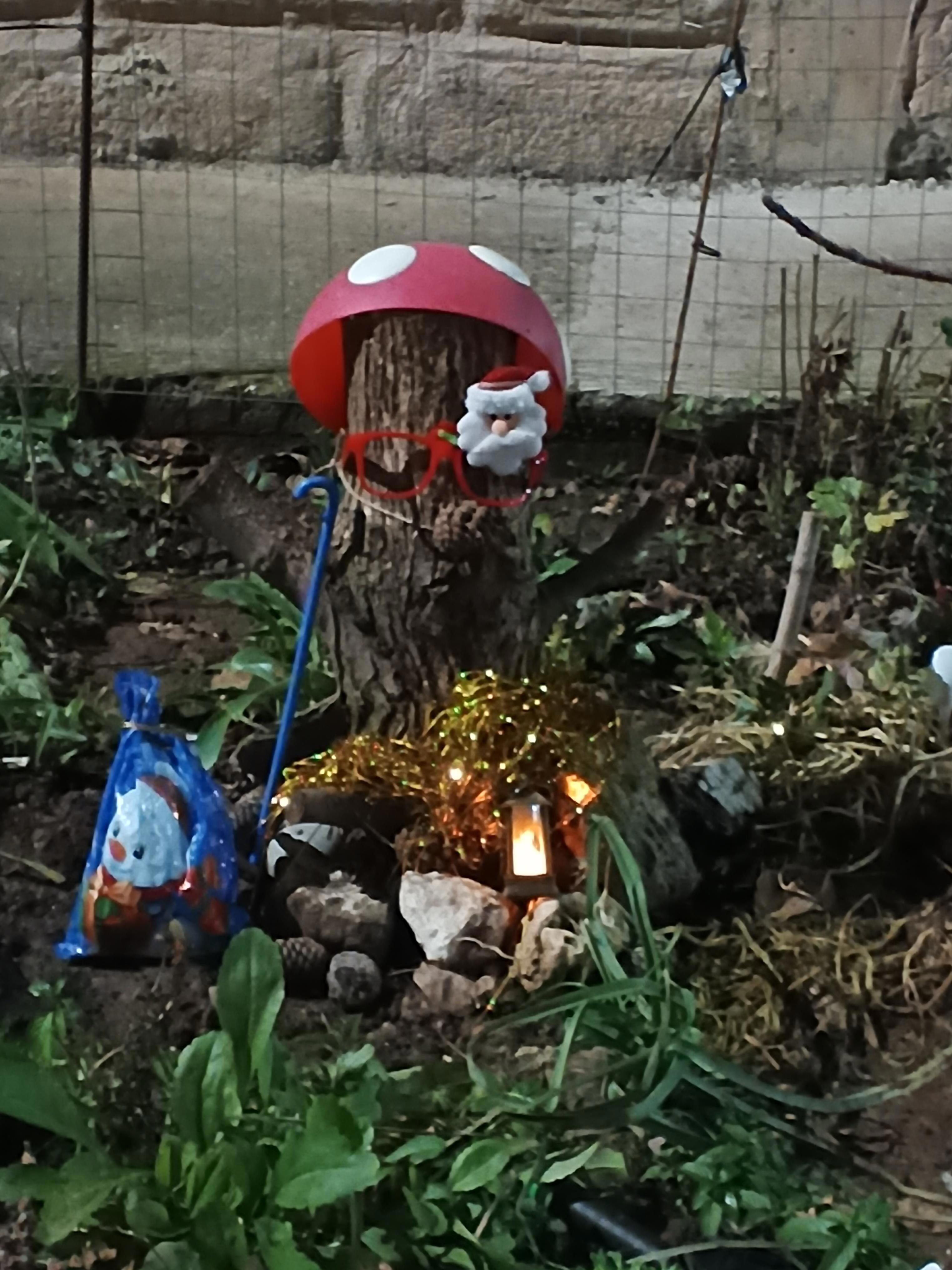 Весёлый грибок с дедом Морозом, снеговиком и фонариком. Фото Галины Малышевой.