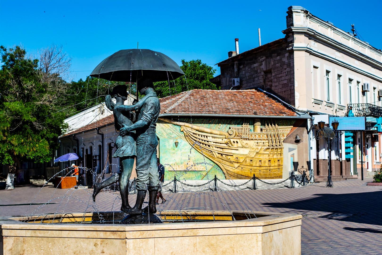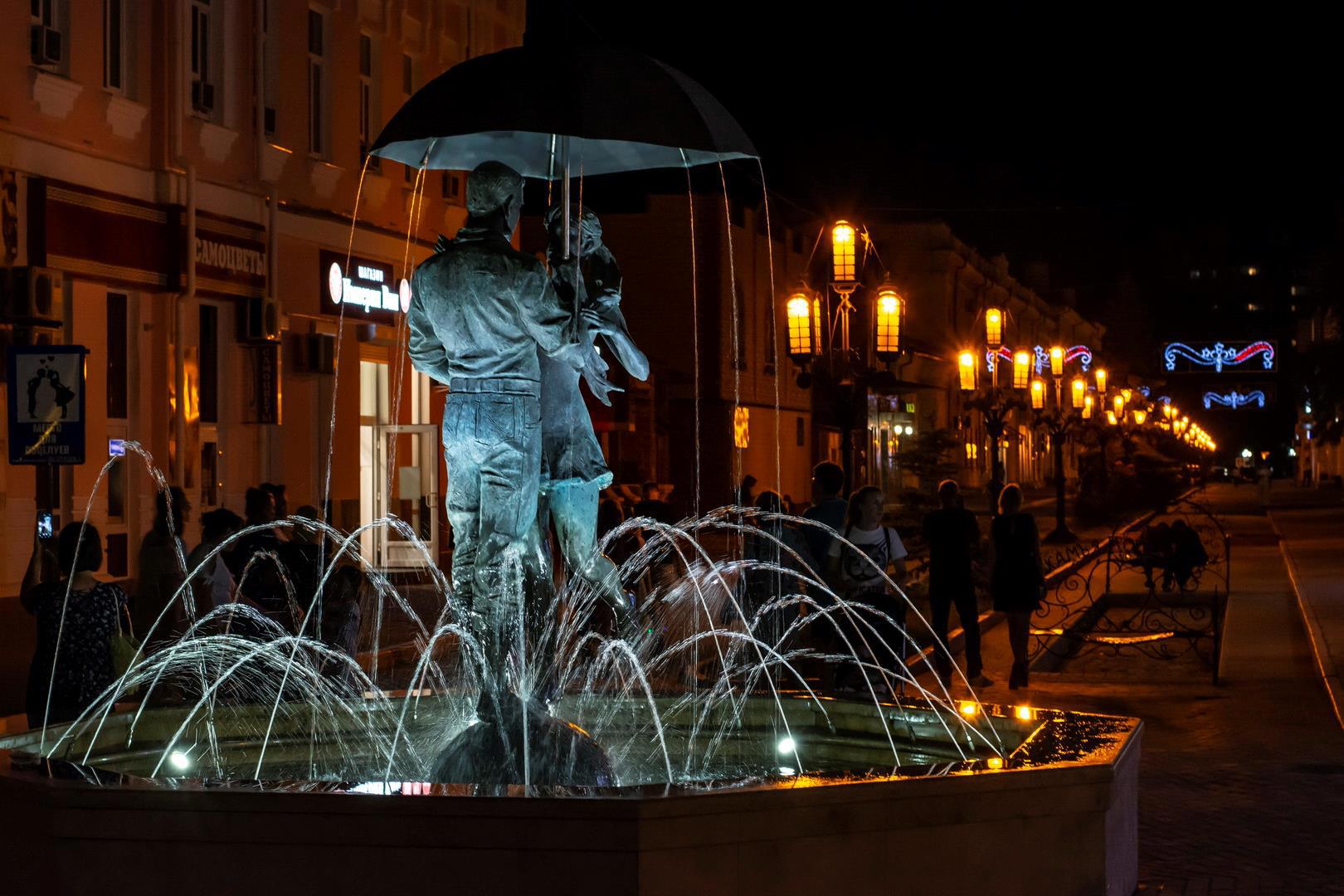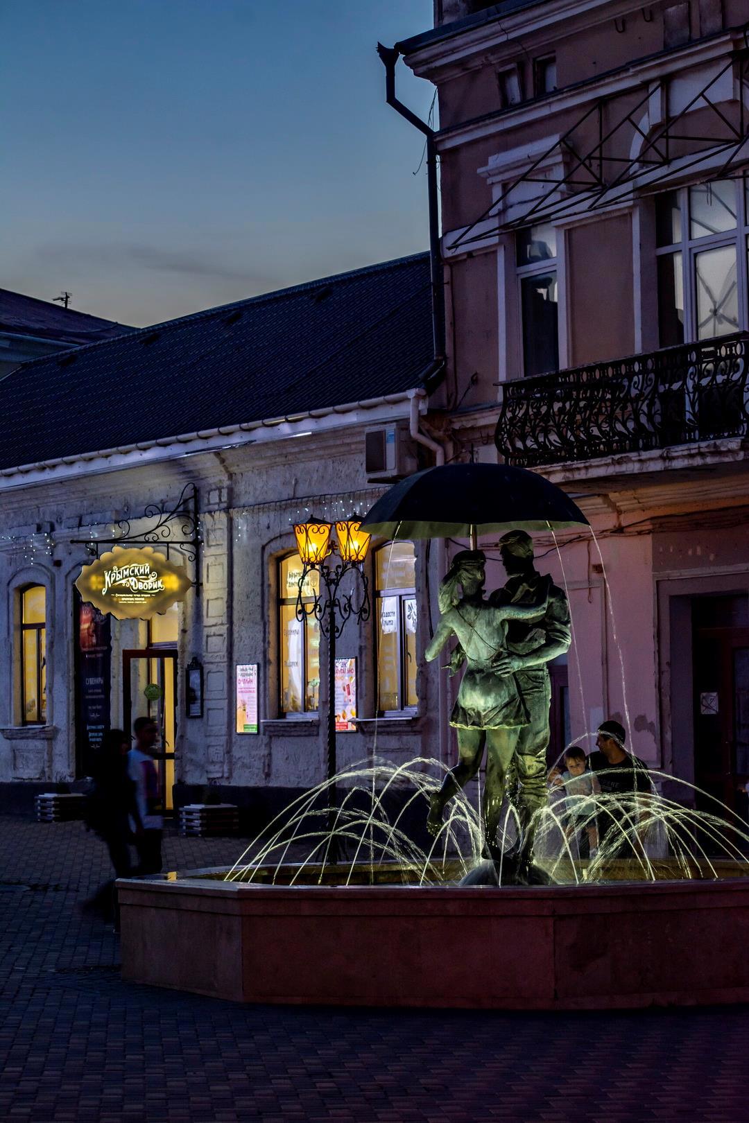 А на маленькой площади, на пересечении ул. Земской и ул. Галерейной стоит фонтан-памятник "Влюблённым". Иногда его называют "Двое под одним зонтом".