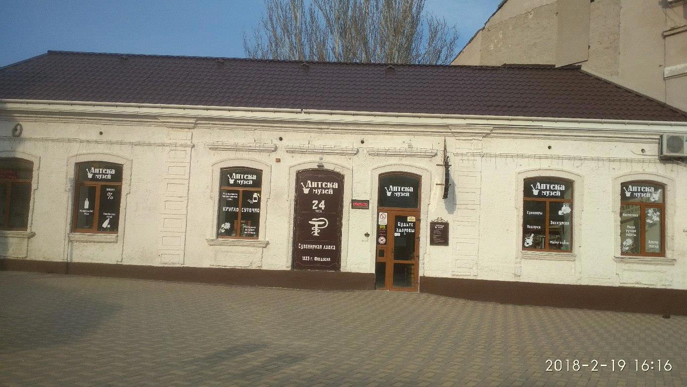 Напротив дома-музея А. Грина, расположена самая старая аптека в Феодосии. Точнее, это уже не аптека. Здесь долгое время был музей аптекарского дела, с продажей трав и сувениров, сейчас это таки магазинчик, где можно купить сувениры, кофе, крымские сладости и посмотреть музейные экспонаты старой аптеки.