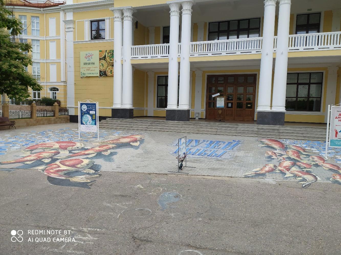 На первом этаже теперь располагается музей рыб. А узнаёте вы об этом, ещё на подходе к нему. Вот таким образом.