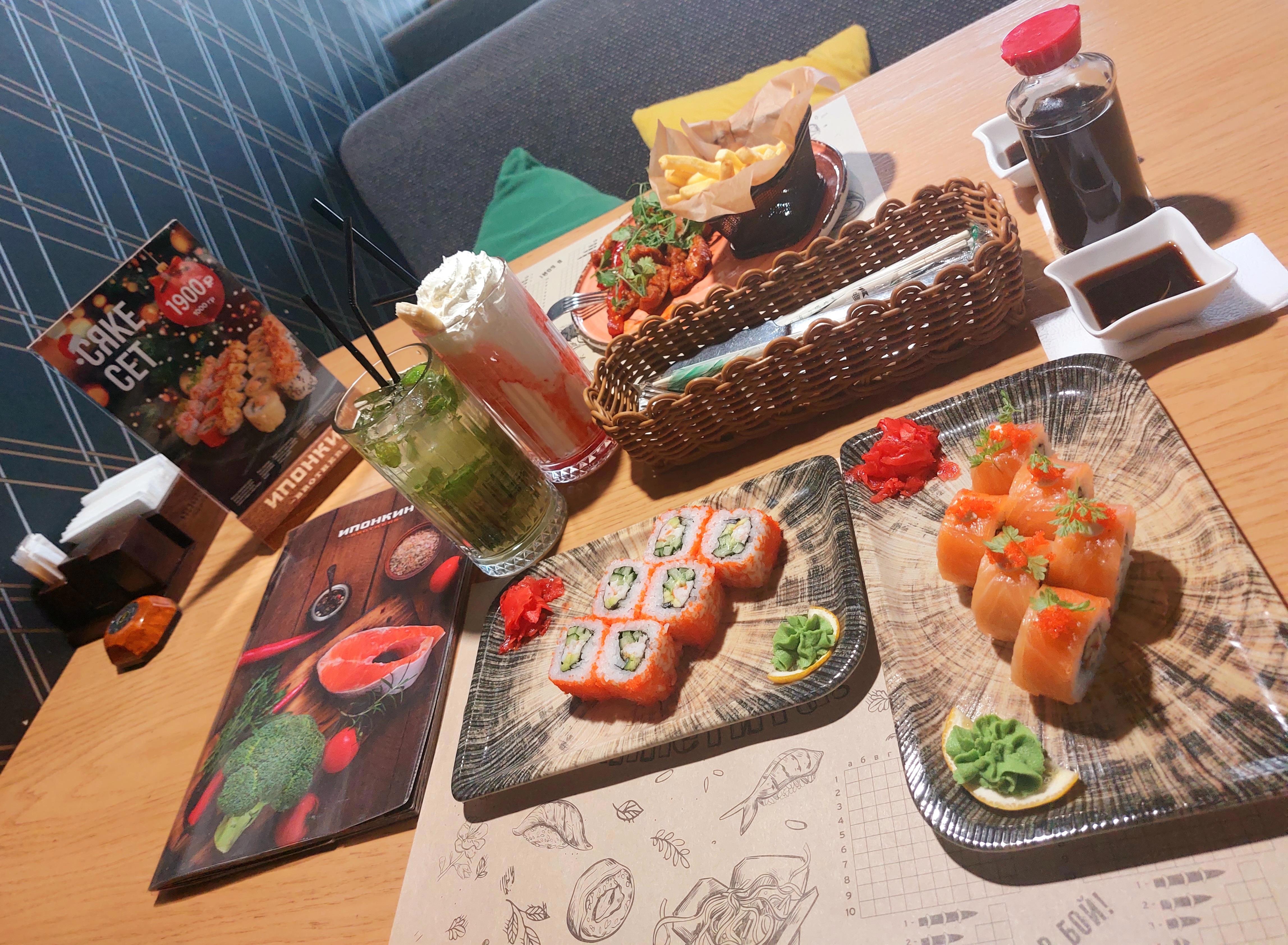 Например, для меня самое вкусное - это роллы "Калифорния" и "Филадельфия", мятный Мохито, а на десерт: чизкейк + чай молочный улун.