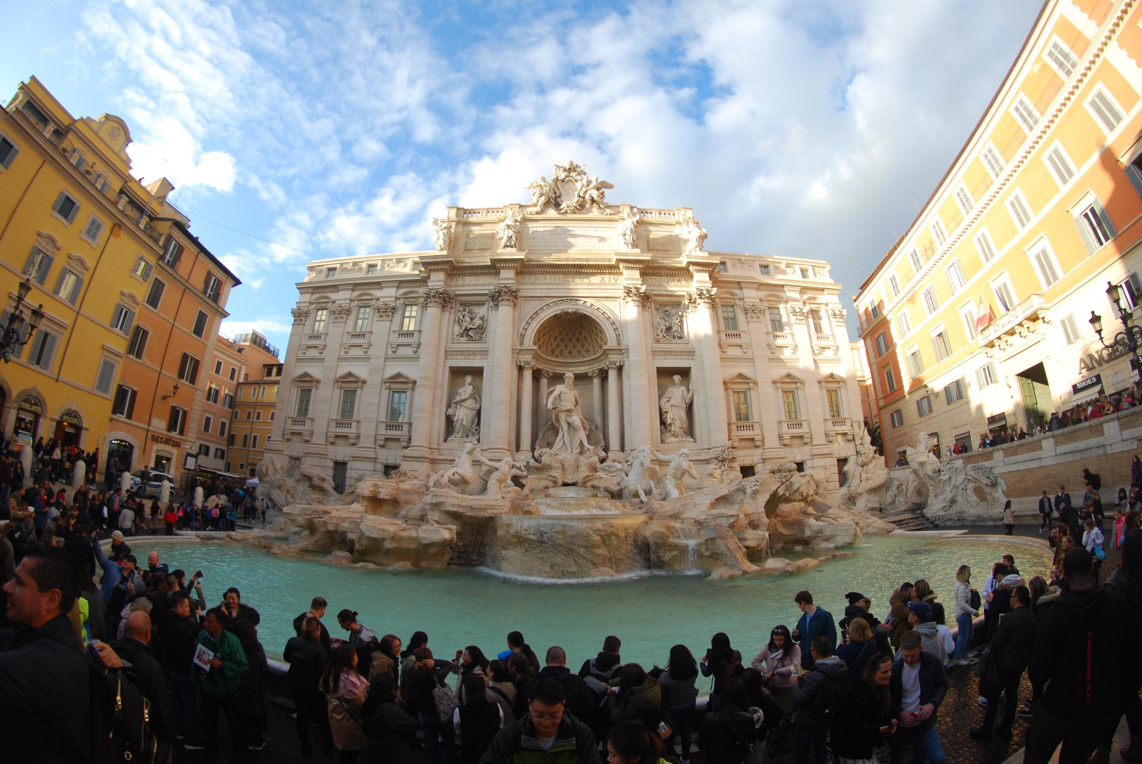 Второй проблемой оказались навязчивые продавцы и гиды. Обычно они все продавали какой-то один и тот же набор, в зависимости от погоды и времени суток. Попадались куча продавцев каких-то машинок-роботов-трансформеров, корзин из деревянной резки и светящихся в темноте роботов. Но они хотя бы не лезли. А вот продавцы селфи-палок и зонтиков были хуже. Как выяснилось, лучшим оружием от селфи-палок был мой фишай (объектив "рыбий глаз" для зеркального фотоаппарата). По нему сразу было видно, что я не тот человек, которому нужна селфи палка. Солидный объектив, не стандарт. Но стоило мне убрать фишай, чтобы зайти в церковь возле фонтана Де Триви, как тут же, за секунду мне предложили селфи палку. Я молча показала на свою фотосумку, товарищ криво улыбнулся и ушел. Альтернативно нам пытались продать зонтик, когда мы уже шли вдвоем под зонтиком.