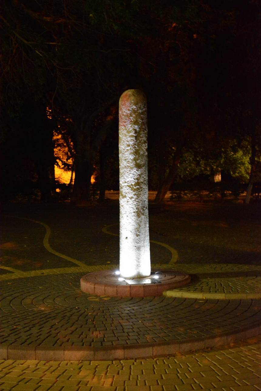 А у подножия башни, на красивой площадке, долгое время стоял вот такой столб... Очень древний... Который считали менгиром. Буквально несколько лет назад, историки смогли доказать, что данное сооружение не является менгиром. И его убрали. Но на нашей фотографии данный памятник ещё стоит.