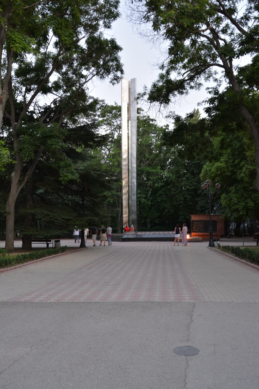 Чуть в стороне от вокзала сквер Пушкина, с памятником Александру Сергеевичу. К сожалению фотографий этого памятника у нас нет... А это упущение. И Юбилейный парк, в котором установлен памятник героям Великой Отечественной Войны и вечный огонь.