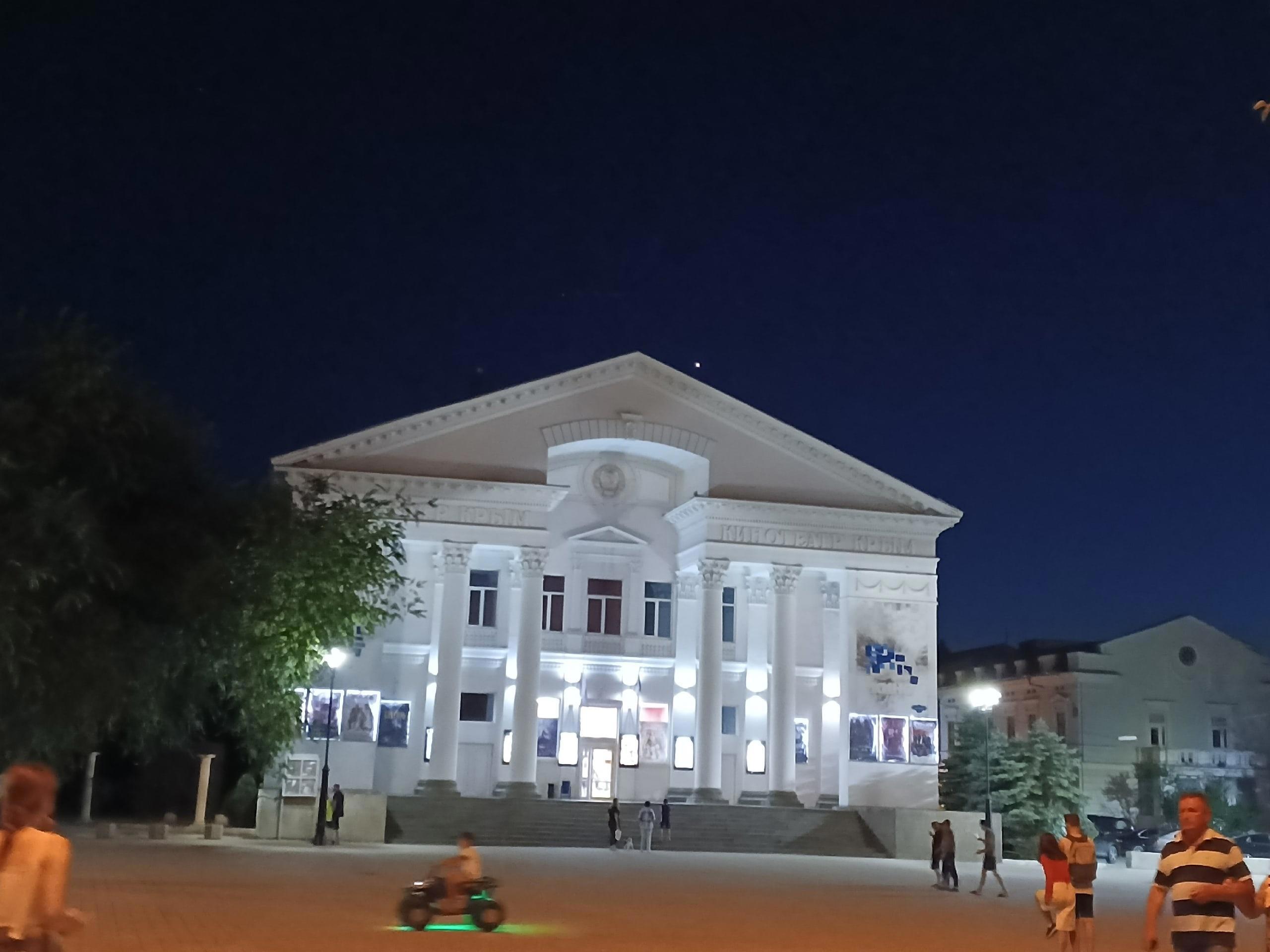 Тут же расположена площадь, на которой гордо стоит прекрасное здание кинотеатра "Крым".