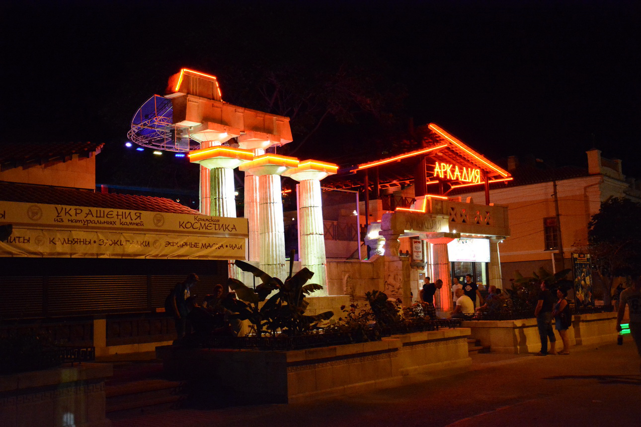 Сперва мы увидим кафе-клуб "Аркадия", которое оформлено в античном стиле.