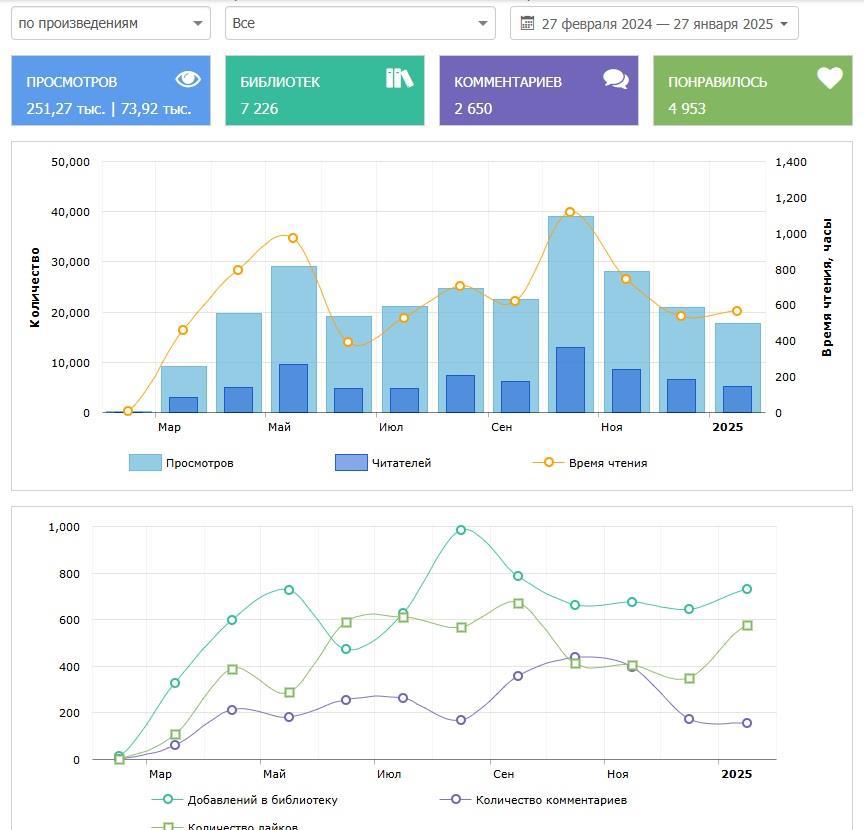 Зато после линии упадка начался неуверенный рост статистики прочтений: