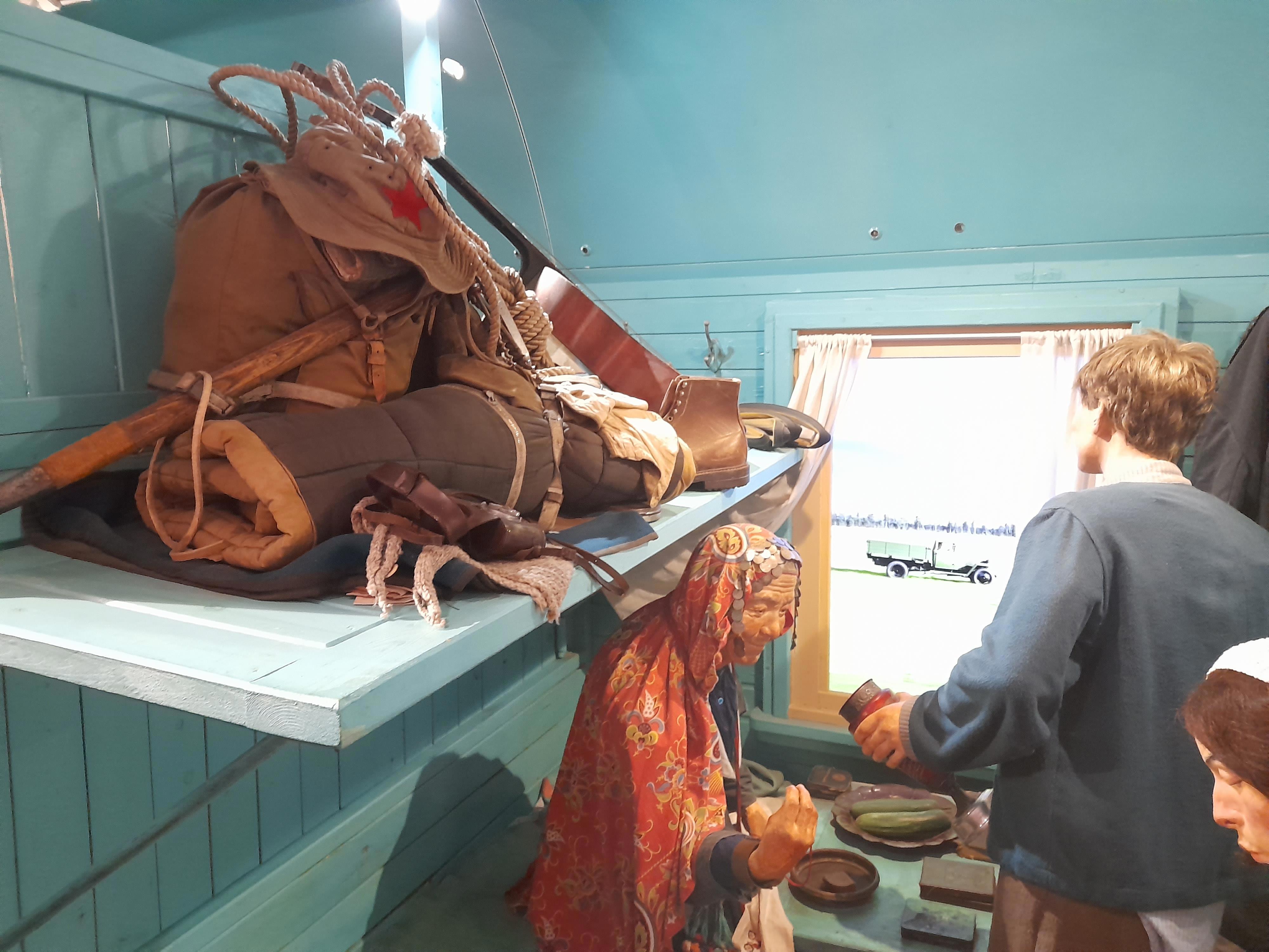 Сам поезд. С окружающим - вполне создает настроение - сохранилось в первозданности. На входе раздают наушники, потому работает аудиогид.