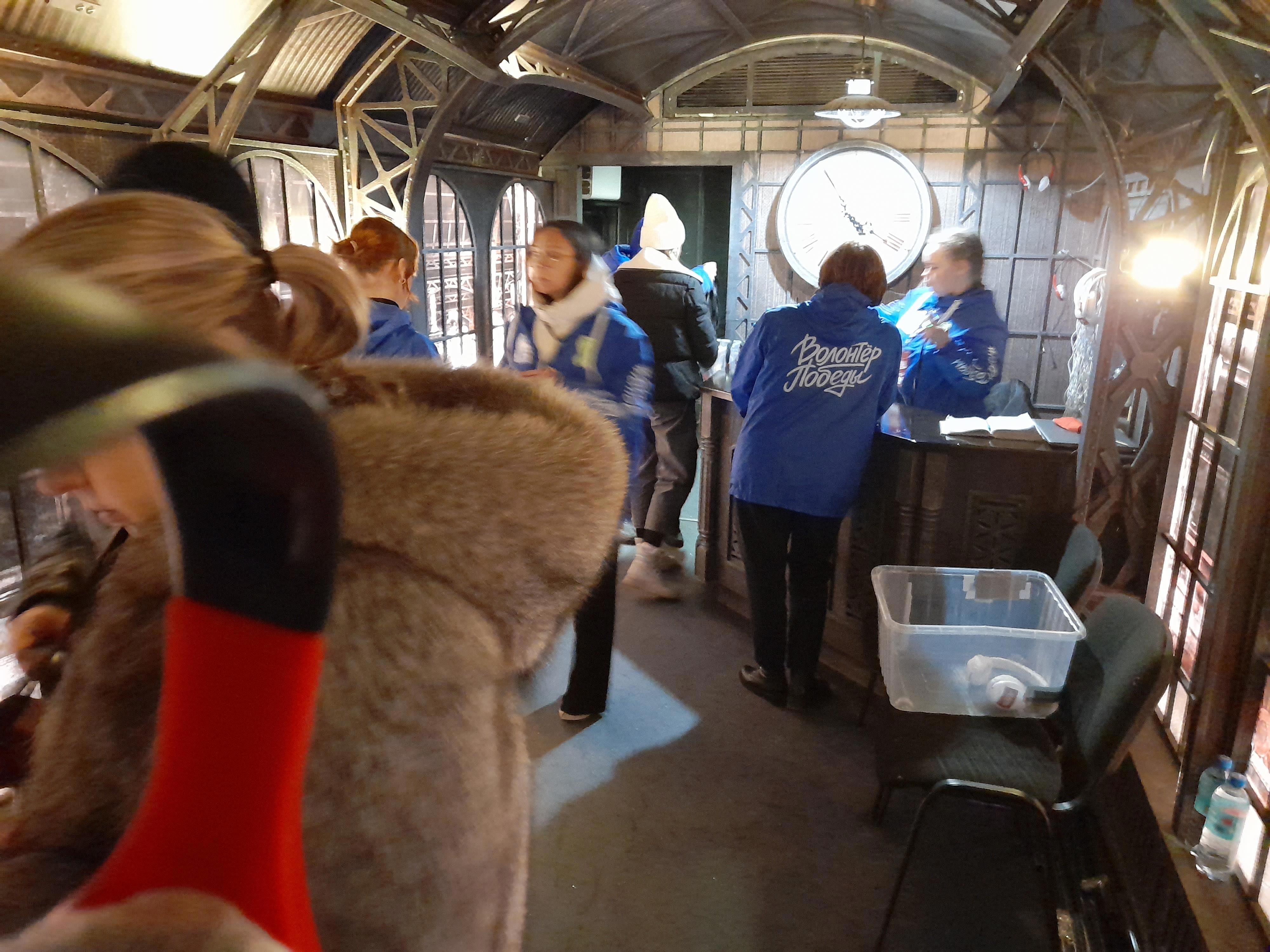 1. Рассчитана такая экспозиция на визит высоких гостей - ну типо Важное Лицо и пяток сопровождающих. Вагоны - достаточно тесные коробки, потому на поток публики это не ориентировано. Потому когда публики много ( а ее всегда и везде по прибытии поезда много, всем интересно) возникают проблемы, как эту массу пропустить. Потому привлекают волонтеров - в основном молодые ребята и девчонки. И тут возникает нюанс, живо напомнивший войлочно-казенную пропаганду позднего СССР. Когда молодому парню надо зачитать в день 100 раз длинный патетический текст с кучей пафосных слов - эффект от такого весьма противоположный. А того парня, которого поставили прощаться с КАЖДЫМ посетителем - просто жалко. Представьте себе, что вас поставили на выходе с эскалатора метро в час пик и вы должны каждому выходящему пожелать "Доброго дня!" - вот как раз это издержки программы встречи Важного Лица. Одно дело - 10 посетителей, другое - 20 каждые 5 минут.