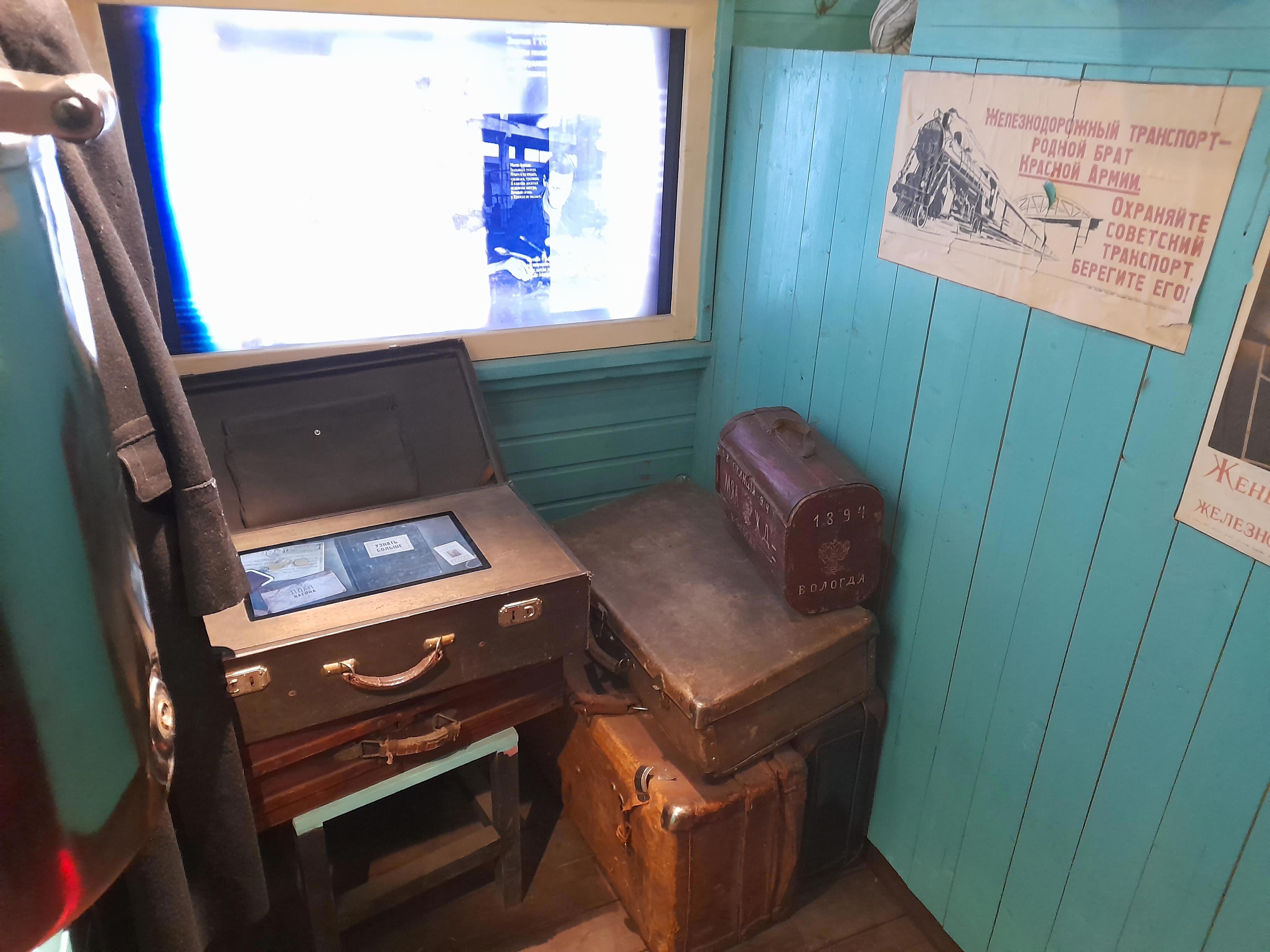 Много интерактивного с экранами, но задерживаться нельзя, потому все эти прелести - не для массового посетителя. Но уровень планки достоверности прям сразу эти чемоданы показали.