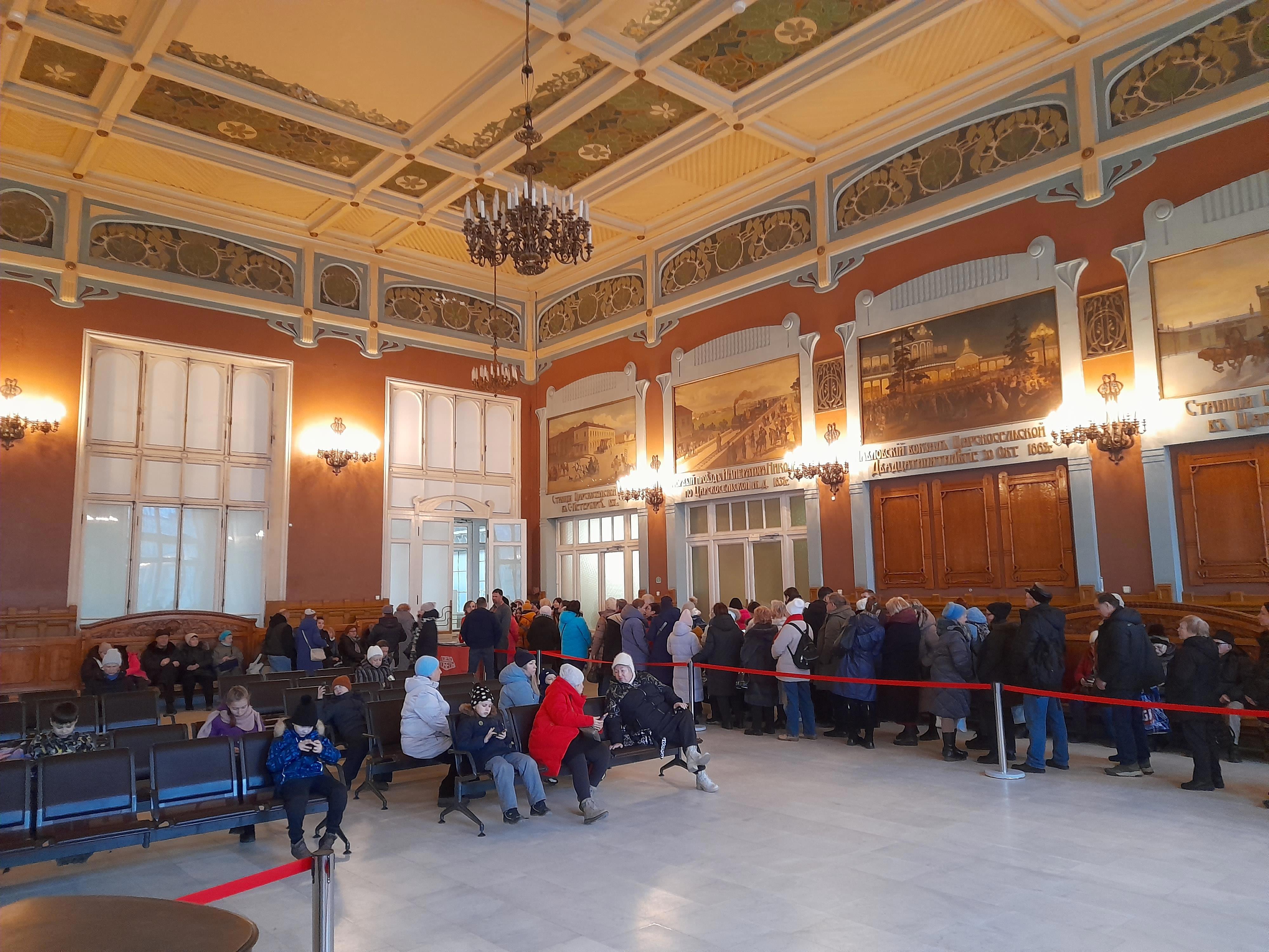 Очередь тех, кто не догадался, что надо зайти на сайт Поезда и там зарегистрироваться на определенное время. Стоять пришлось час, хотя сначала легкомысленно посчитал, что это быстро. Ага, щаз.