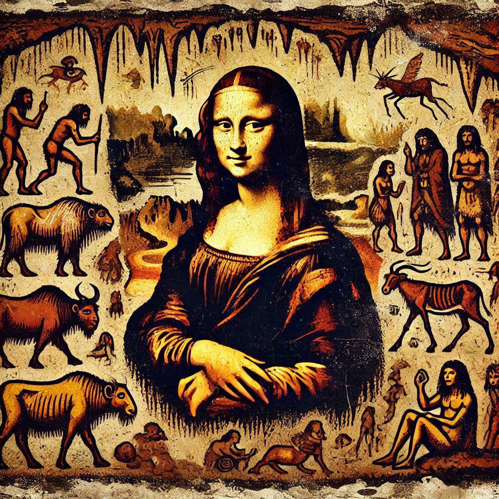 P.S. Как нетрудно догадаться, недавняя подборка пещерной нейроживописи была получена при попытке сгенерировать пещерную Мону Лизу. Примерно вот такую. Склиса в правом верхнем углу оставил намеренно, на его тему можно пофантазировать.