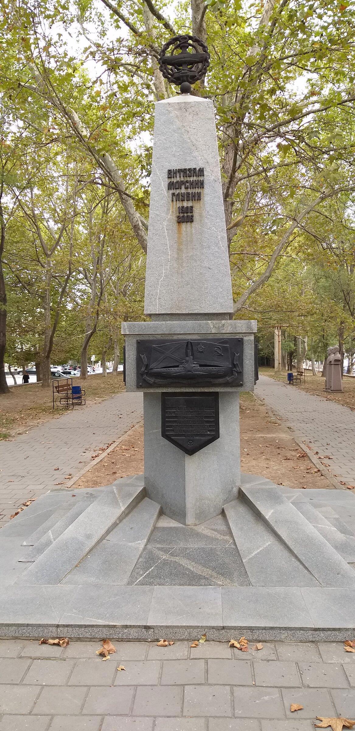 Дальше по Платановой аллее стоят несколько памятников посвященных героям-подводникам и морякам Российского и Советского флотов.