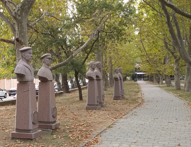 Дальше по улице Горького идёт прекрасная Платановая аллея, на которой находится большое количество памятников.
