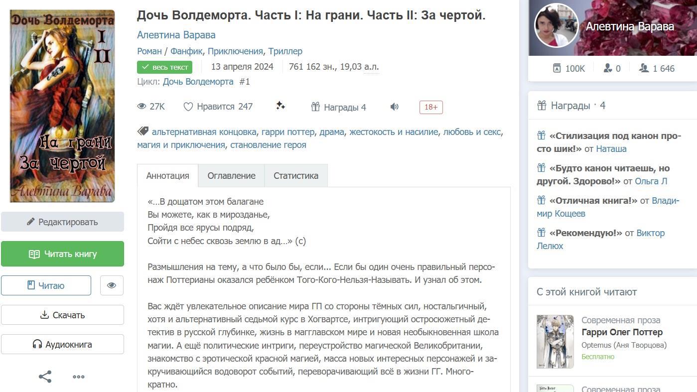 Пока автор лихорадочно строчит оригинальные произведения, подростковый фанфик ведёт успешную жизнь..
