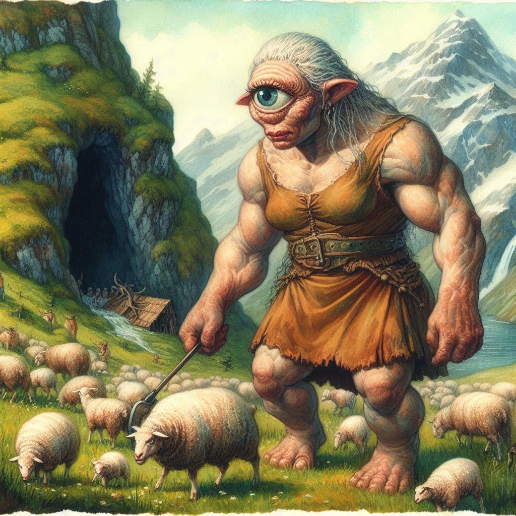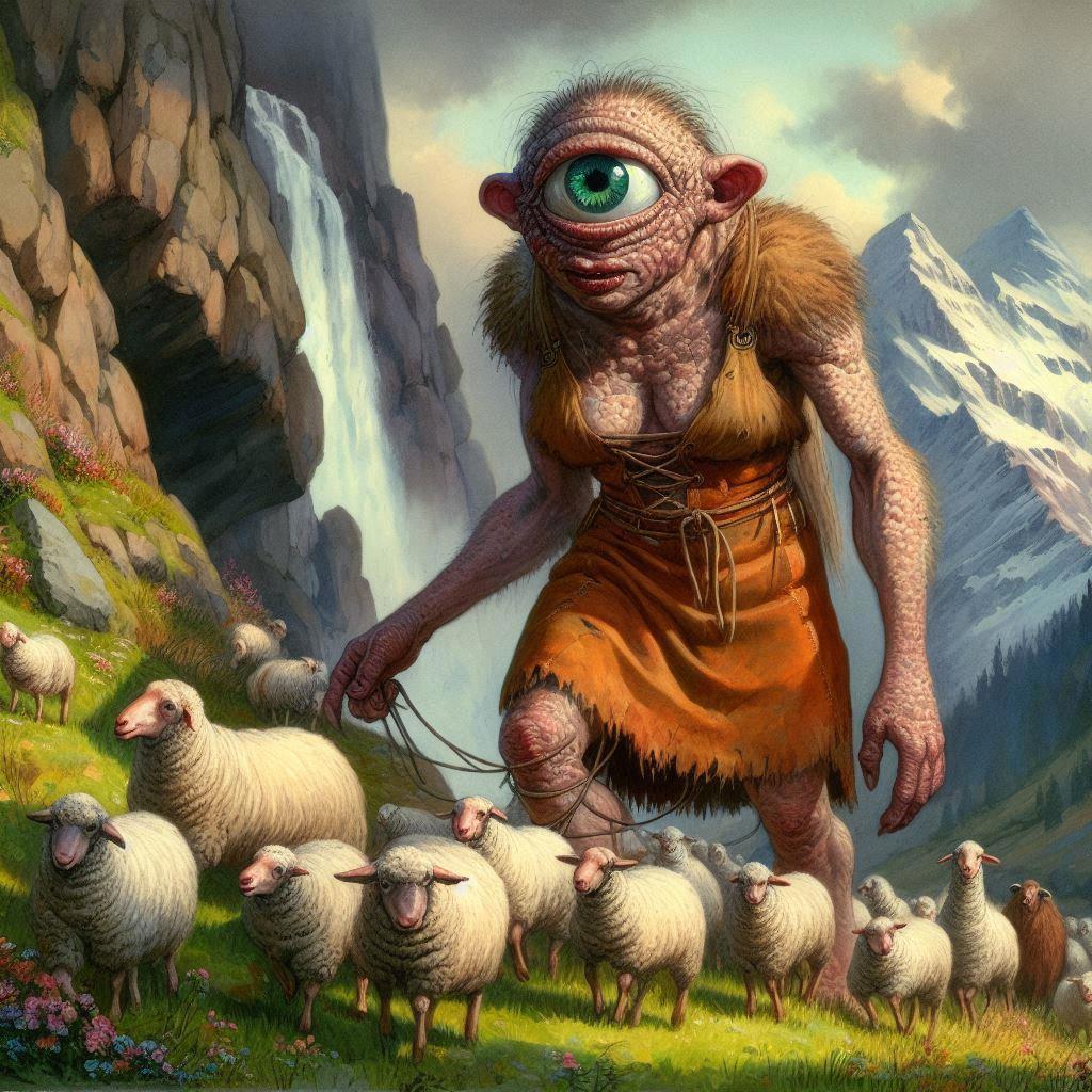 Как известно, циклоп Полифем из Одиссеи был изгоем: у него характер был такой мерзкий, что он вынужден был жить на отшибе от остальных сородичей. Помните, он их звал, а потом говорил им, что его обидел Никто? Вот, так я чо хочу сказать: остальные циклопы в отличие от этого маргинала были вполне приличными ребятами, как мужички, так и бабоньки, спокойно занимались себе скотоводством на трезвую голову и с людьми вполне уживались.