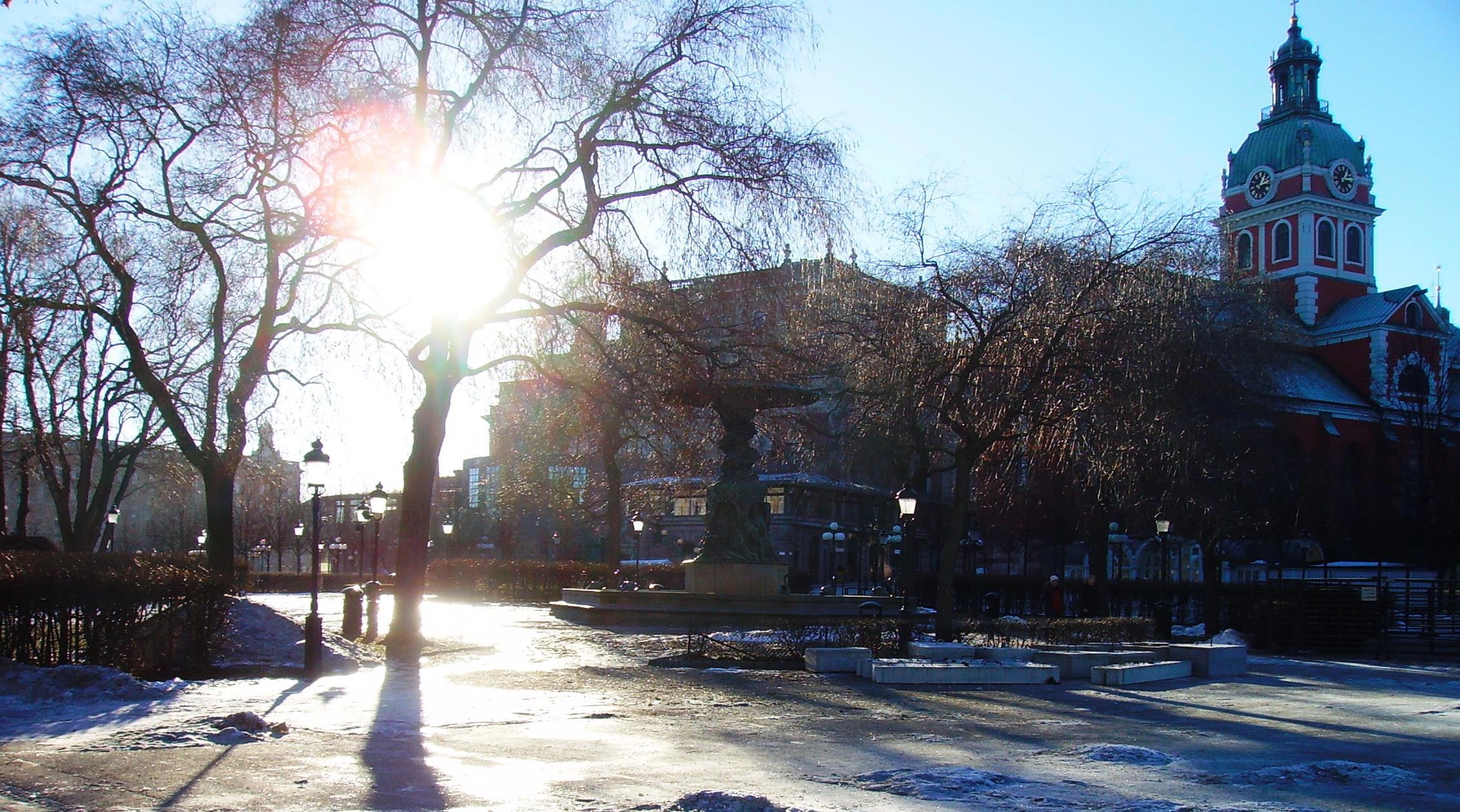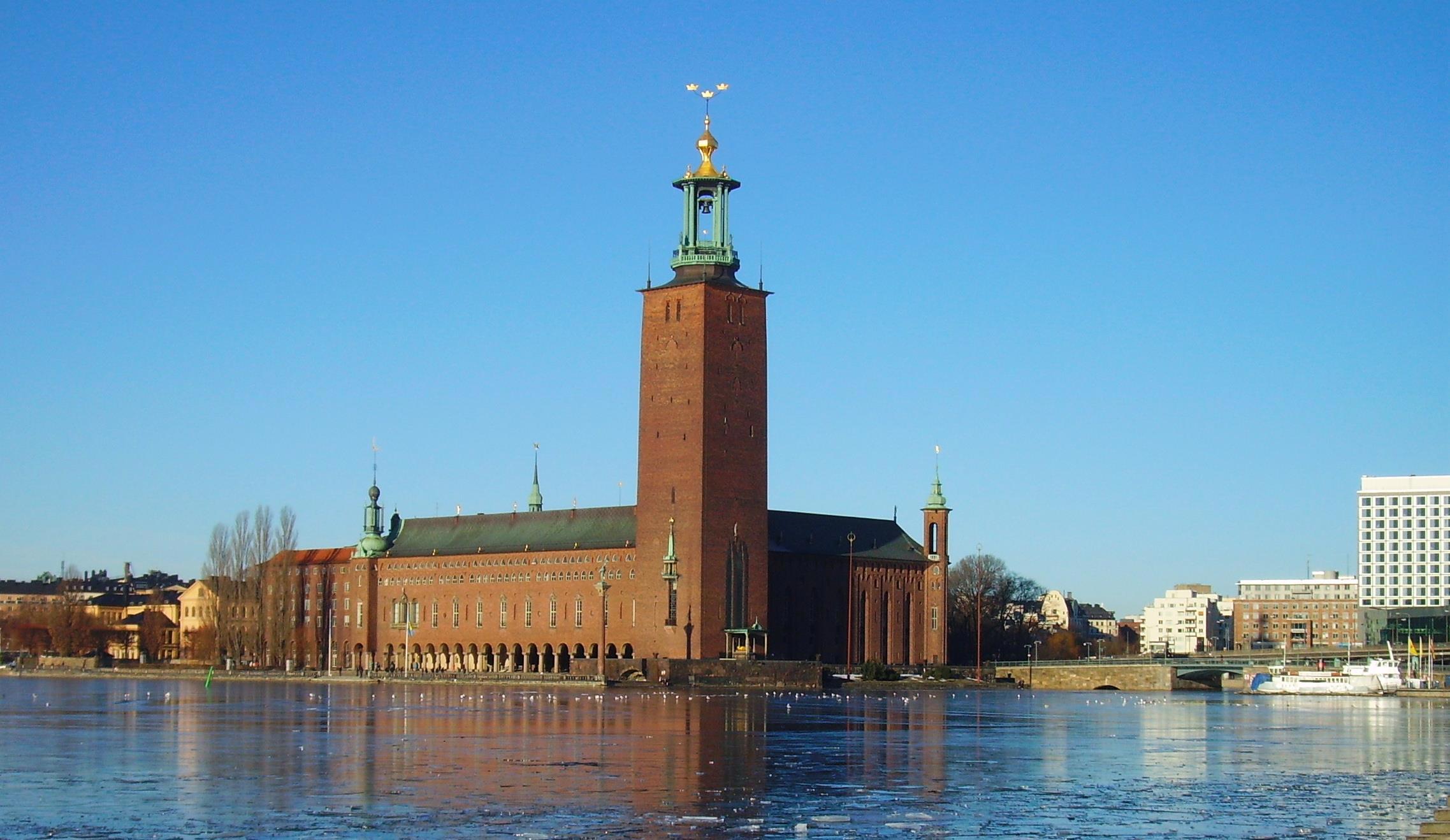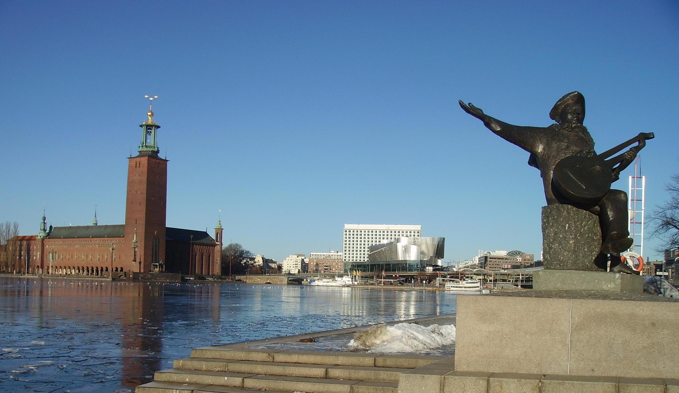 Хоть и начало февраля, а было тепло - где-то ноль – минус два…С острова Риддархольмен открывался вид на ратушу,