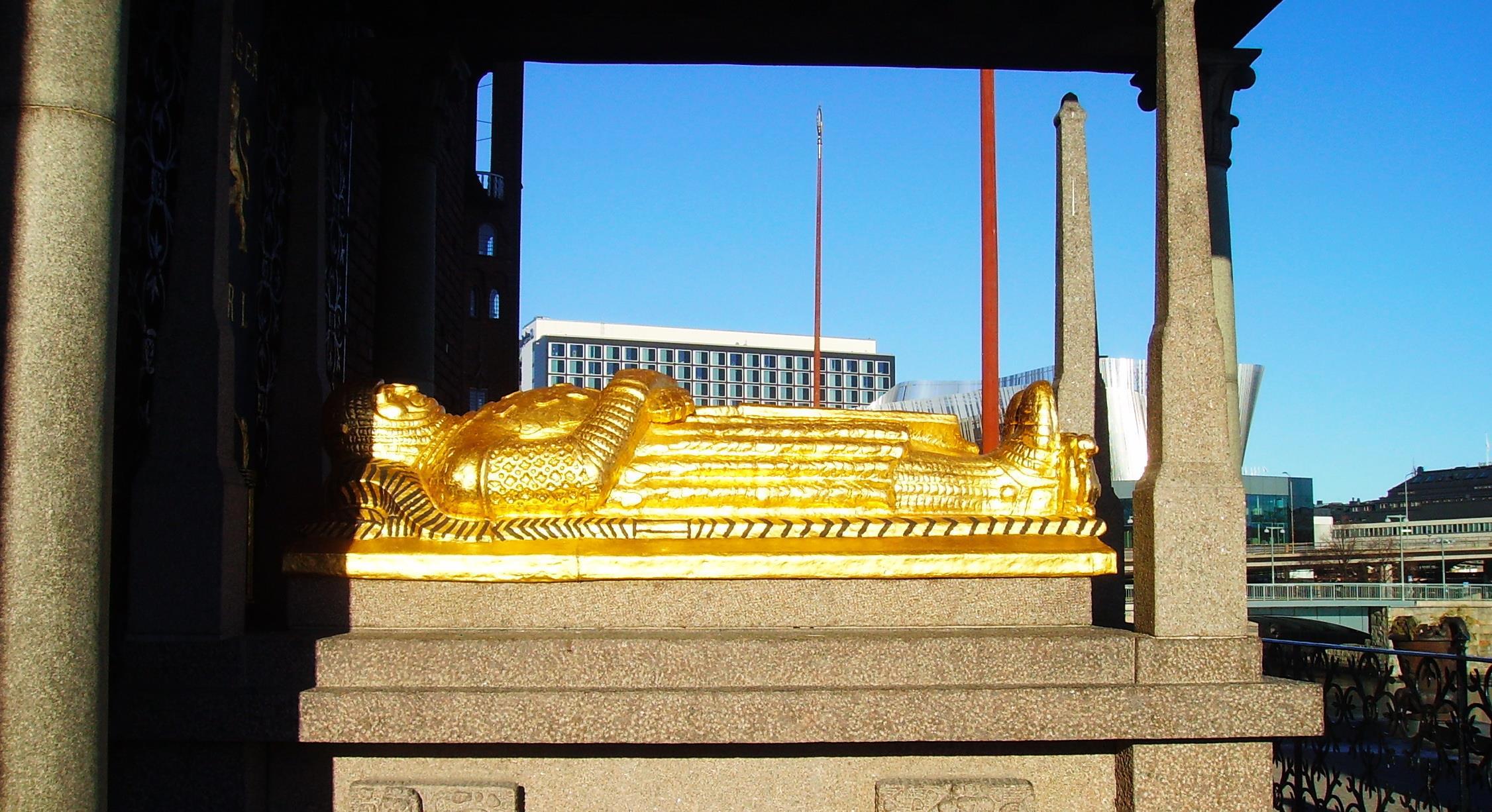 Поехали к ратуше… она не старинная, просто старая. Хотя могила ярла Биргера (того самого) – основателя Стокгольма – там имеется. А еще имеются разного рода скульптуры…
