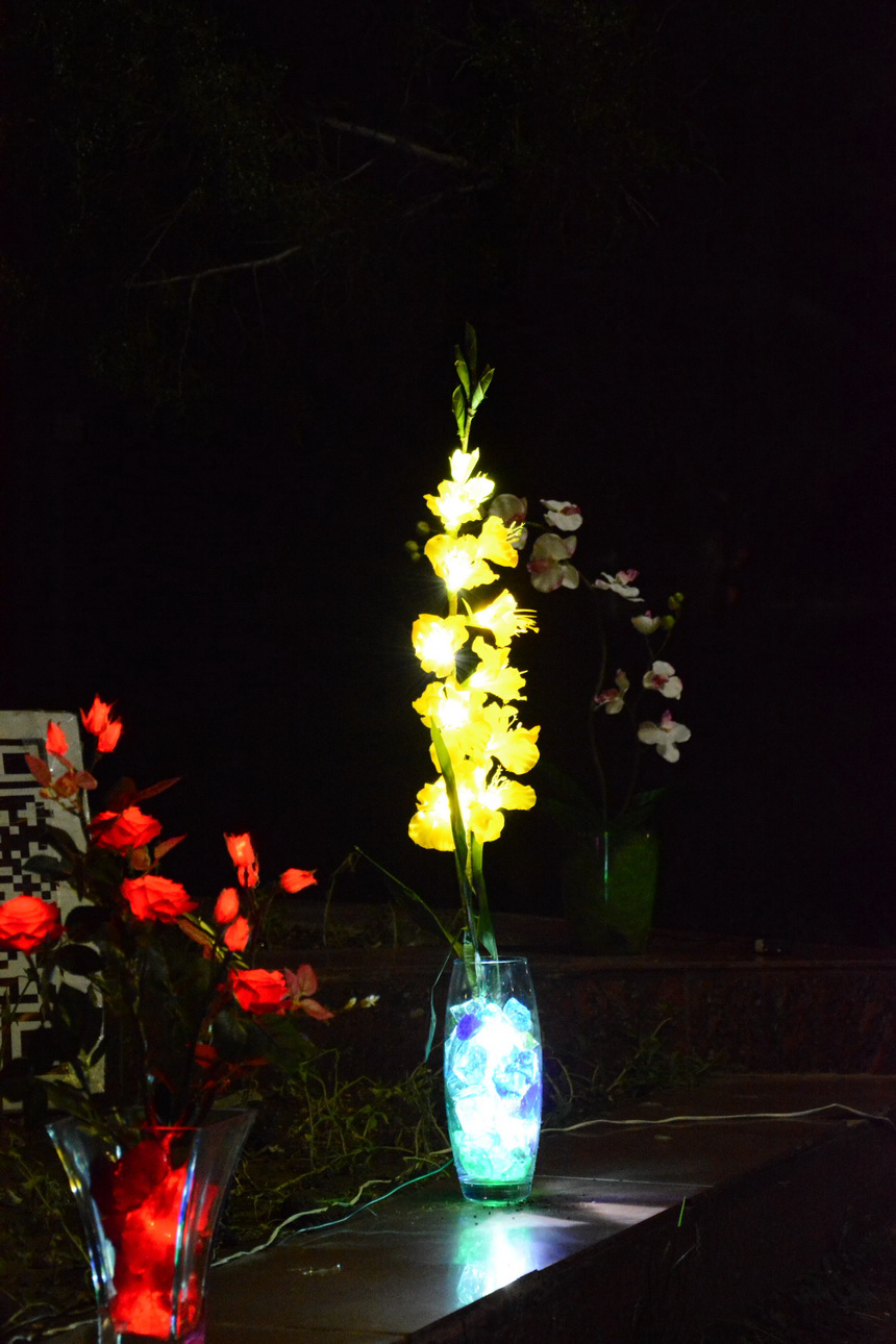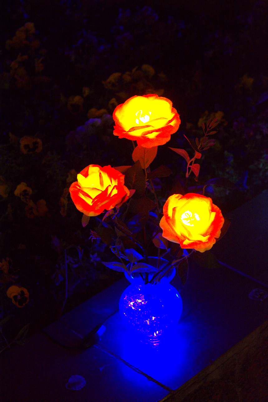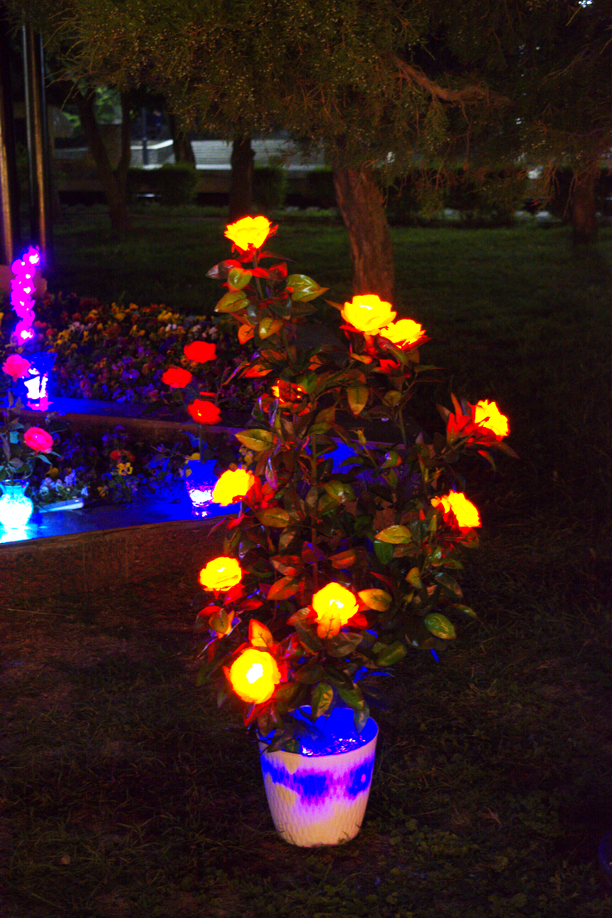 Не буду вас дальше интриговать - это светодиодные светильники в виде букетов, отдельных цветов и даже целых кустов. Это необыкновенная красота. Они и днём, без подсветки выглядят изумительно. На внешний вид не отличаясь от настоящих цветов. Но вот вечером и ночью... Это волшебство и красота в одном флаконе.