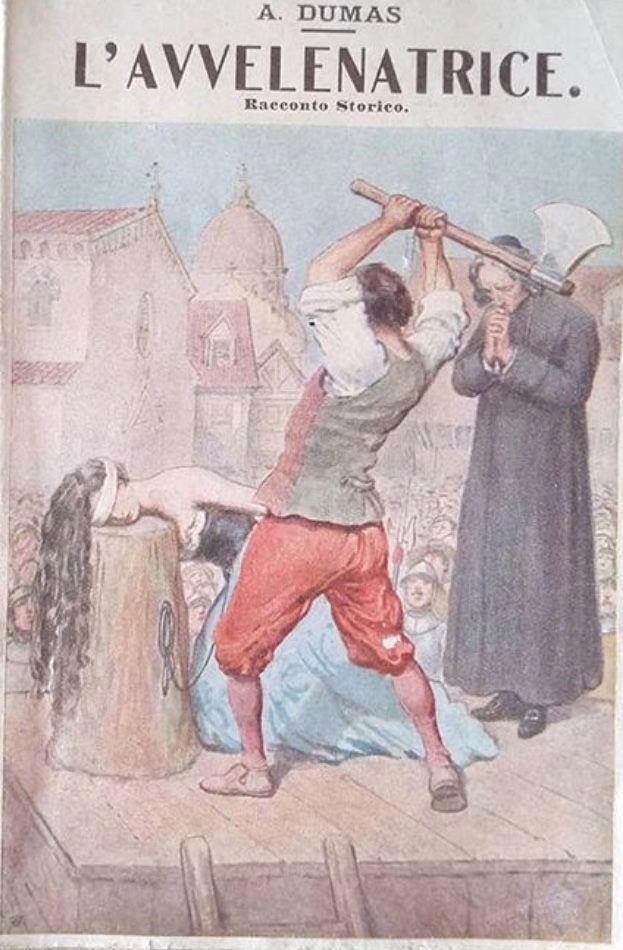Беатриче легкою ногою перешагнула через скамью и легла на ней. Даже палач потрясен и вспоминая о дочери, колеблется нанести удар.