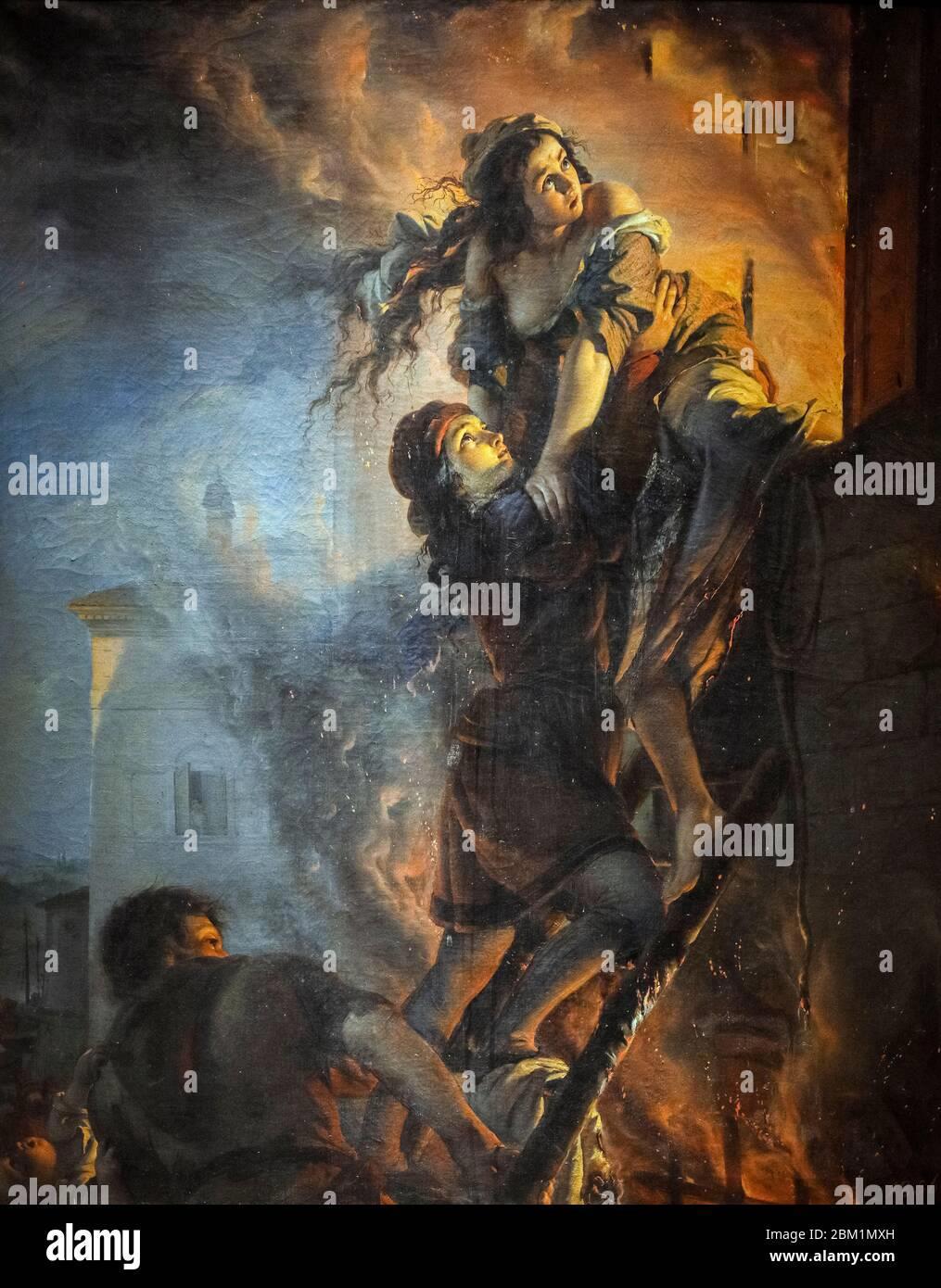 Между тем, рассеявшееся войско и сбирры, пользуясь смятением, успели вновь соединиться. Командовавший войском велел ударить на народ и смять толпу. Это было тем легче сделать; что беспорядок уже и без того развеял её на половину. Юный Убальдини, не внемля ничему, кроме голоса пылкой страсти, решается один противопоставить своё сопротивление напору конницы. Он вонзает шпагу до самой рукоятки первому наскакавшему на него воину; но за первым наскакали другие, и один из них рассёк ему палашом череп, а другой плечо. Убальдини упал замертво на землю…. Пешее ополчение стало в каре плотною стеною, пробить которую уже не было возможности. Запертые с тылу и отбрасываемые назад напирающей конницей, товарищи Гвидо могли только спасаться, кинувшись в бок, что они и сделали с невообразимым ожесточением, видя, что попытка их проиграна. Беатриче; как тот же челнок, выброшенный наконец усиливавшейся бурей на острые утесы, где ему суждено разбиться в щепки, повергнута была противоположными и безрассудными порывами своих спасителей к самому подножию эшафота.