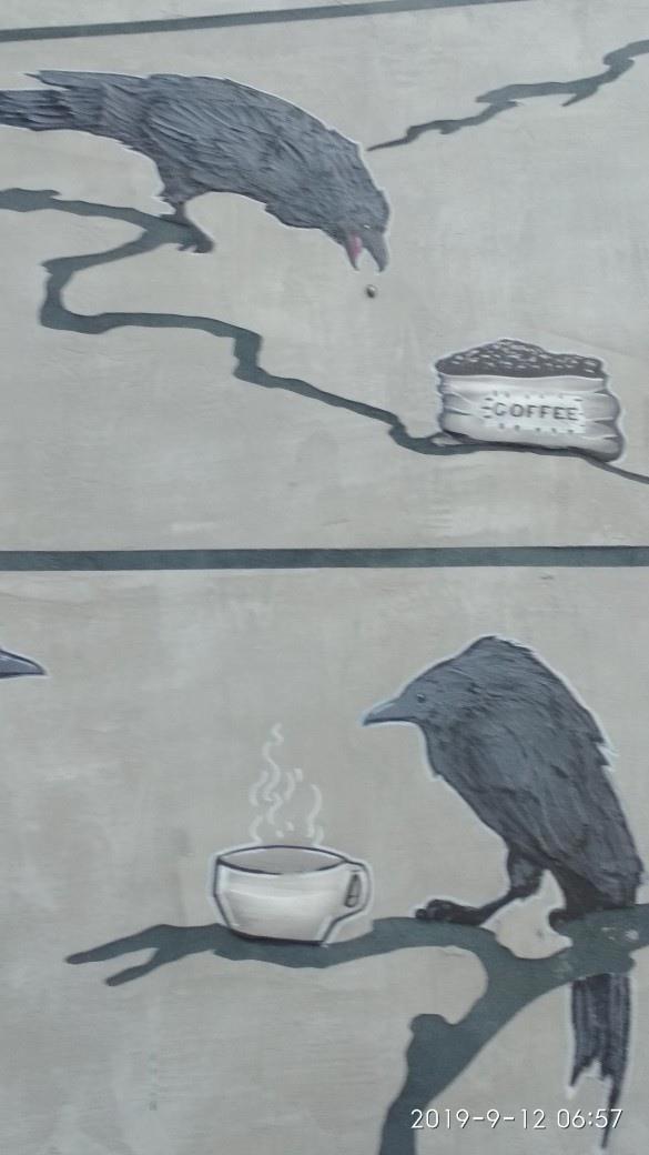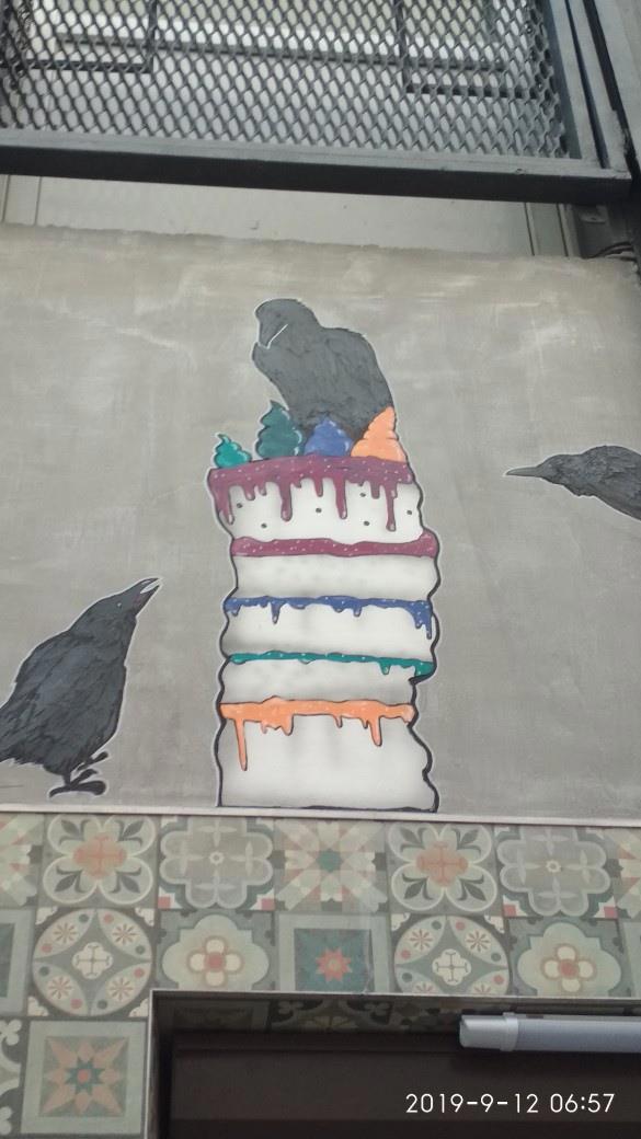 Сегодня мы покажем вам роспись на стене кафе. Кафе называется "Белая ворона".