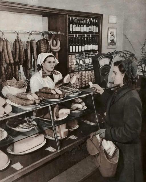 1953 год. В Рижском продуктовом магазине. Продавец Вилма Петерсоне. Снимок из журнала Zvaigzne