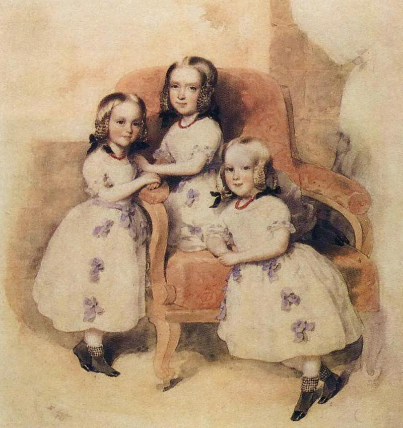 Слева направо: Леони, Матильда, Берта. Акварель Леопольда Фишера. 1843