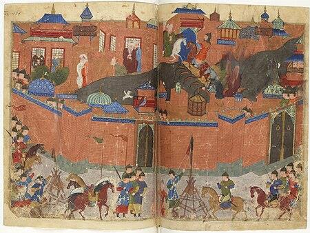Автор: Nil Магия и разум1258 — Ближневосточный поход монголов: монгольские войска под командованием Хулагу и их союзники после осады взяли Багдад, столицу Аббасидского халифата (в настоящее время — столица Ирака). После вторжения Багдад был разграблен и сожжён, погибло от 100 000 до 1 000 000 жителей. Библиотеки Багдада, включая Дом Мудрости, были уничтожены монголами, книги кидали в реку, чтобы гатить Тигр. Багдад был разрушен и несколько столетий оставался грудой развалин, что означало конец так называемого Исламского Золотого Века.