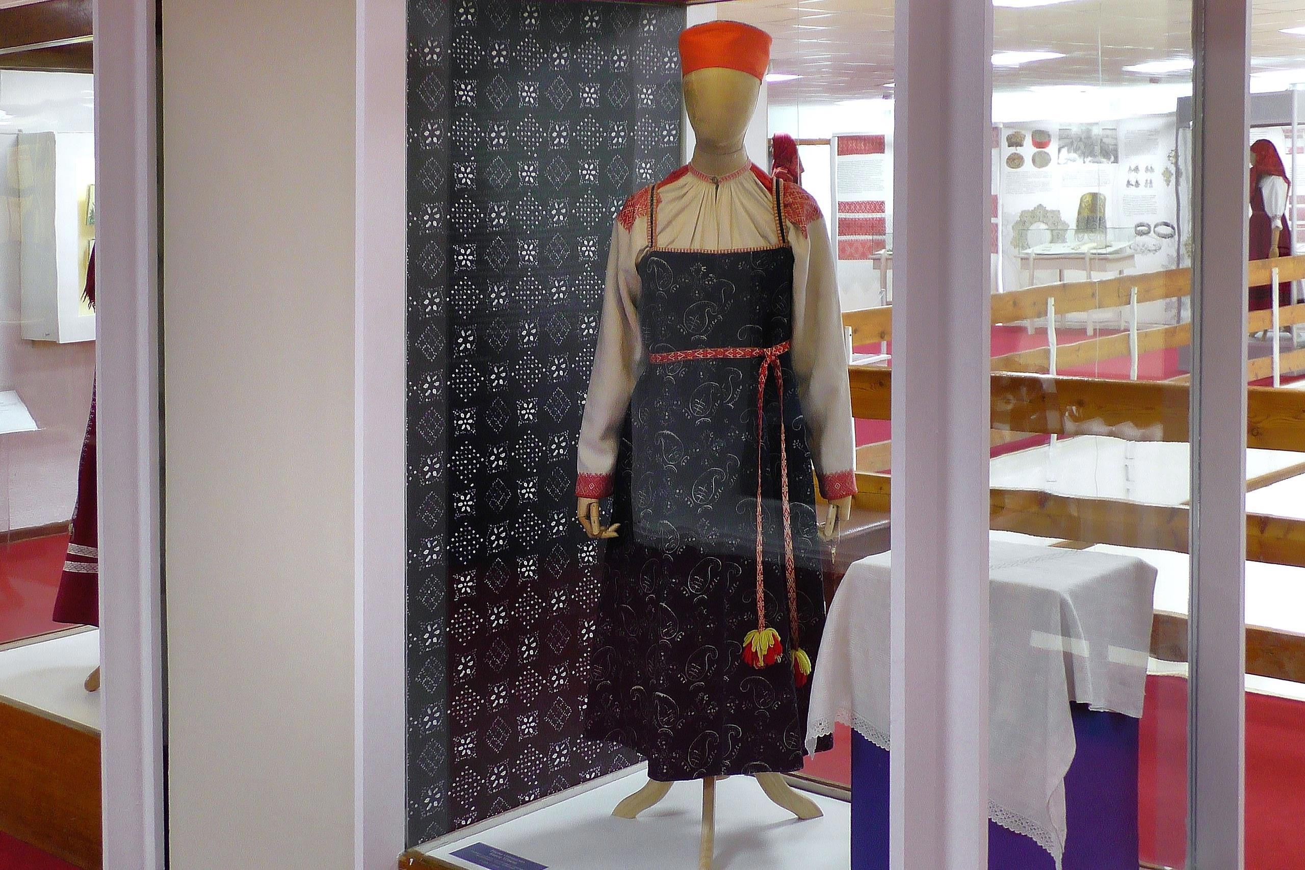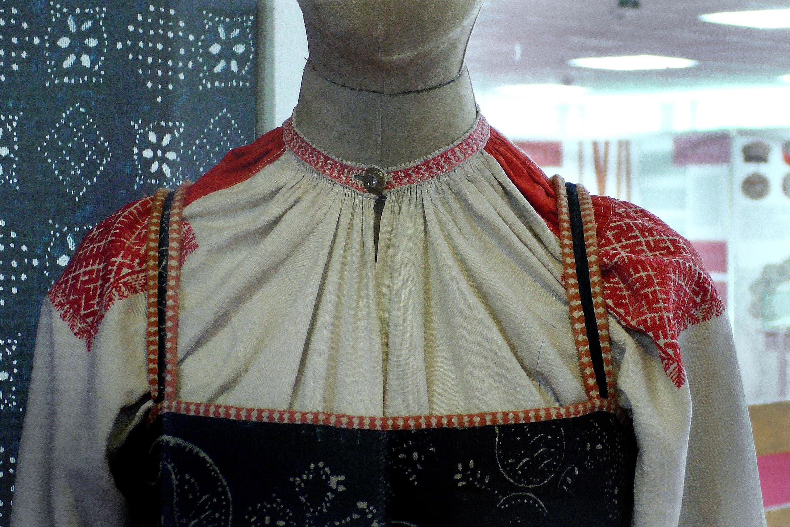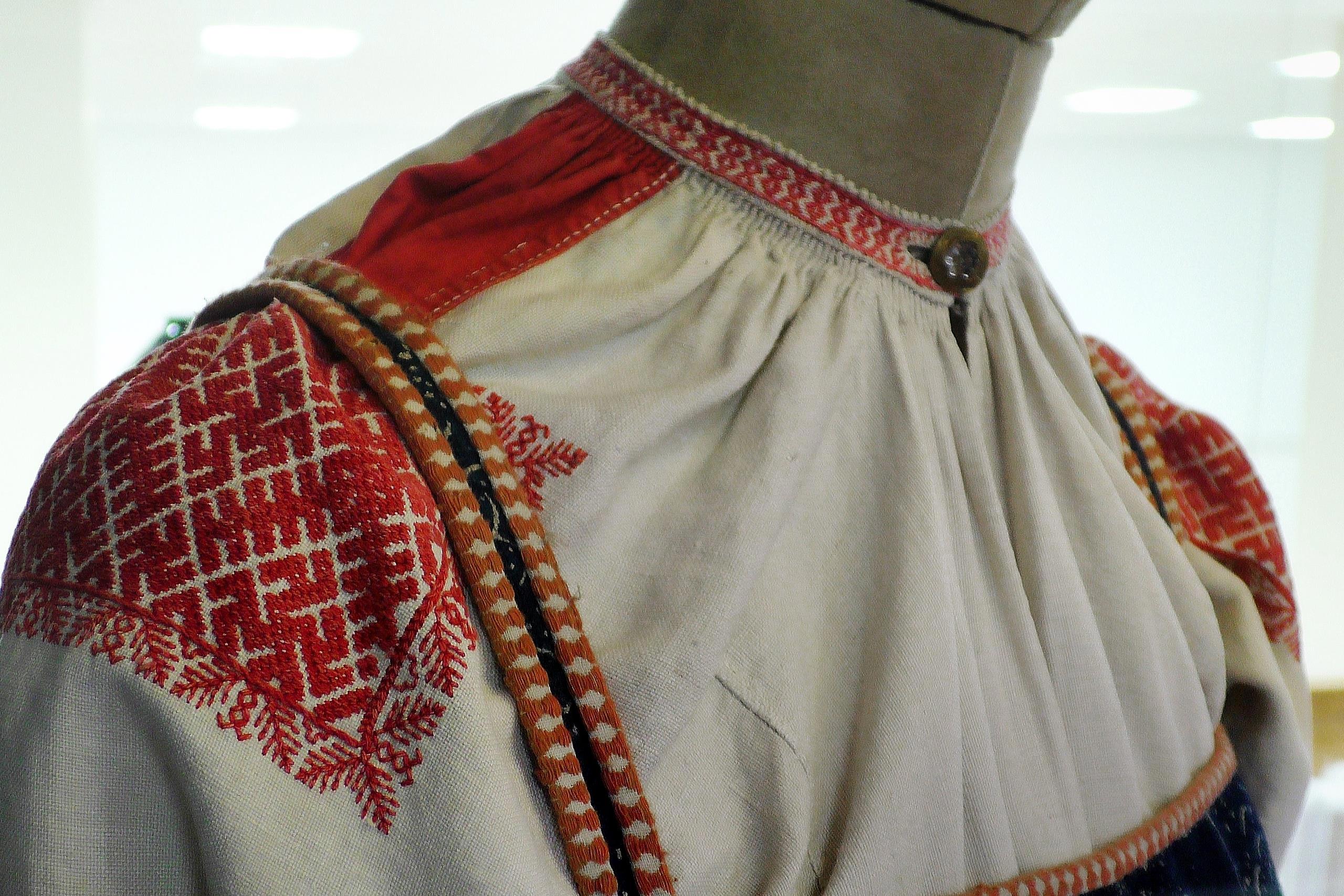 Костюм  состоит из рубахи-"намышницы", сарафана-"набивонника", тканого пояса и повойника.