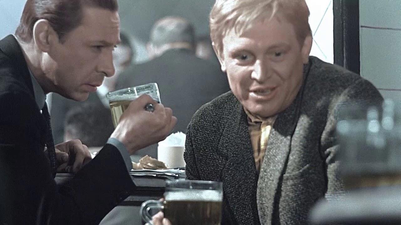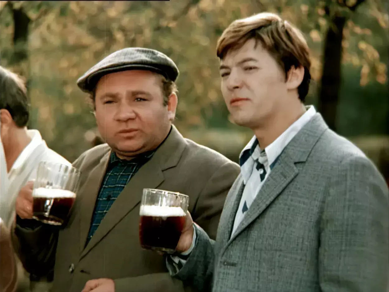 Но возвращаясь, собственно, к кружкам. В 1969 году произошло коренное изменение концепта и отход от формата 1931 года. Кружка стала прямой, ручка расширилась и стала под всю руку, пропала за ненадобностью выемка под большой палец. Почему? Я объяснений на нашёл, но думаю, там сказалось всё сразу: новые требования к эстетике и эргономике, а заодно и требования к массовому производству как в технологическом плане, так и в плане снижения себестоимости. Стоила кружка уршельского завода 35 копеек. И в фильмах, она, разумеется, тоже засветилась.