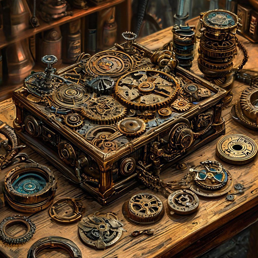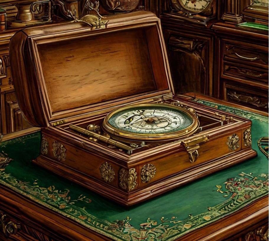 "Магическая" астролябия, "зурбаганский" револьвер, сейф из подвала Валуэра, макет источника в полуразобранном виде, дневники Лоцмана, тарелка супа из таверны "Белый Дельфин" и корабельный хронометр.