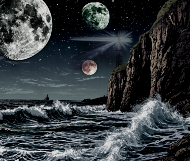 А на закуску - небосвод Мира Трёх лун с башней маяка