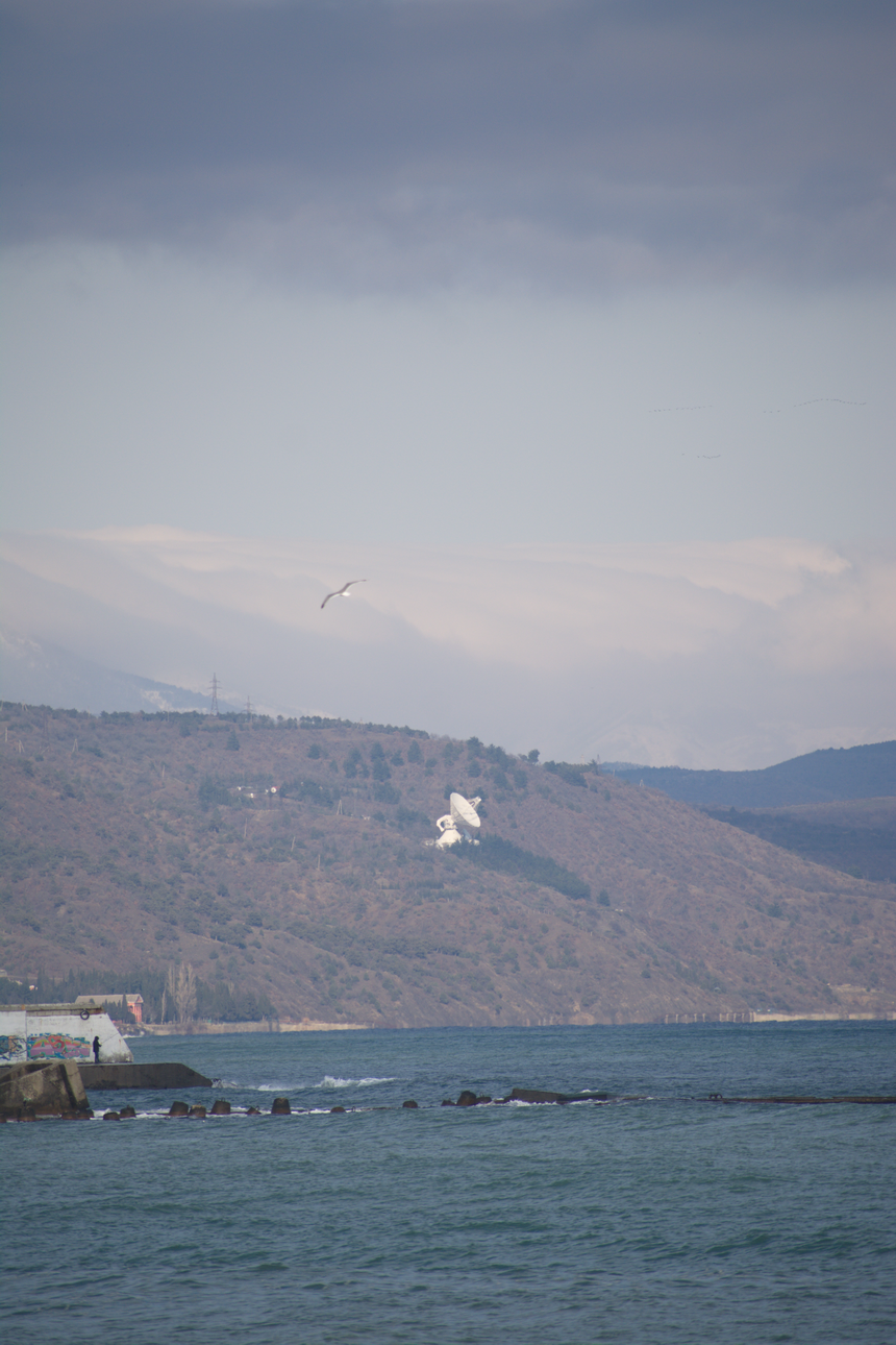 С набережной прекрасно видна антена дальней космической связи. Фото Сергея Малышева.