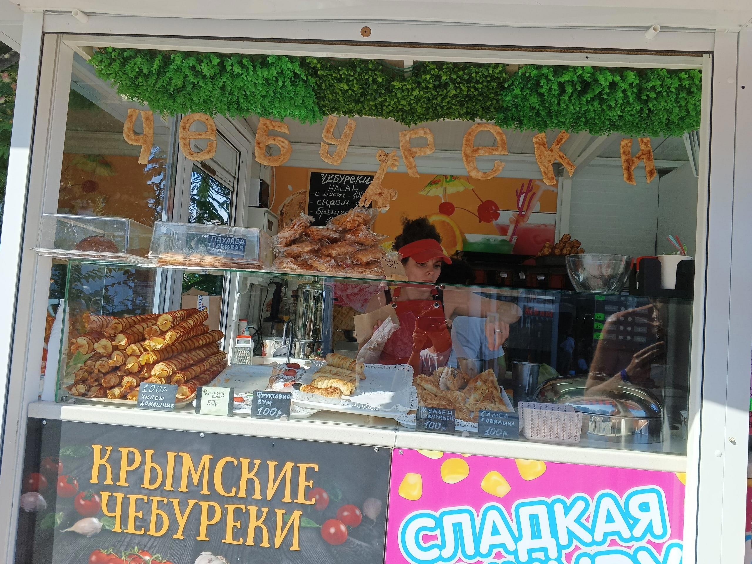 Здесь и чебуреки, и слоечки, и картошка-спиралька на шпажке. Фото Галины Малышевой.