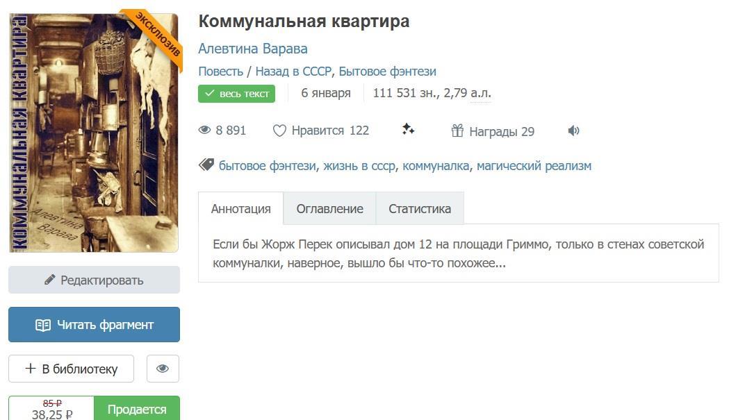 Странные сказки об очень странной жизни в одной советской коммунальной квартире можно почитать тут (ссылка) и сегодня - всего за 38,25 руб)