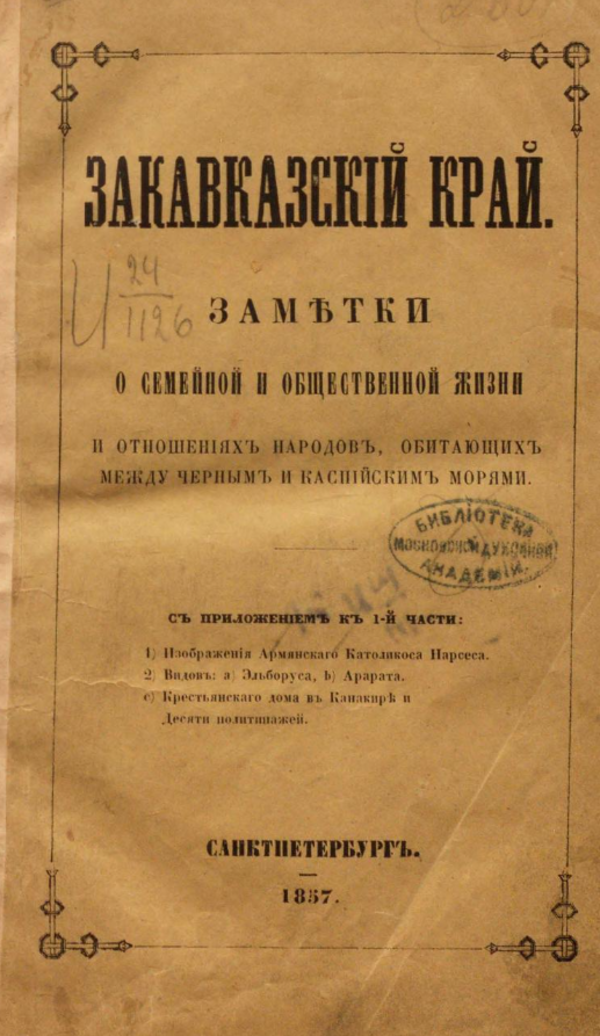 1. August von Haxthausen "Transcaucasia: Sketches of the nations and races between the Black sea and the Caspian"