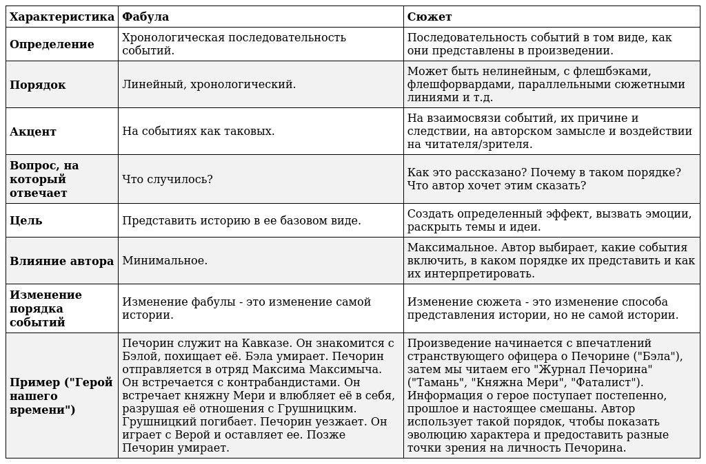 Главное отличие фабулы от сюжета в том, что фабула — это как было, а сюжет — это как нам рассказали. То есть сюжет — творческая обработка фабулы.