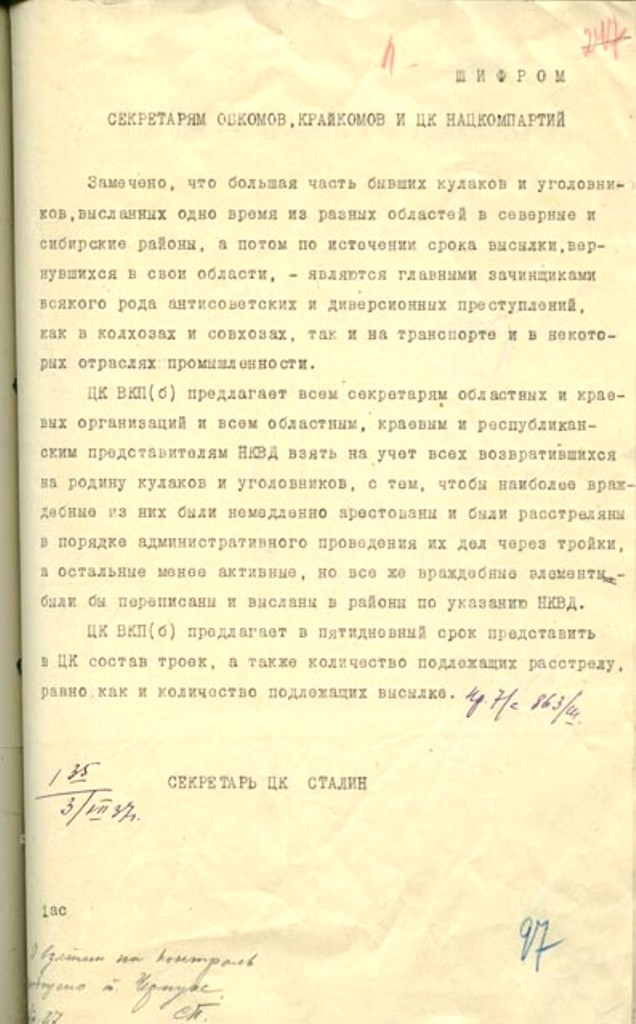 А они говорят что Сталин просто был властолюбивый маньяк и моральный урод,и набрав власти,решил окончательно расправится со своими настоящими и мнимыми врагами,на всякий случай.