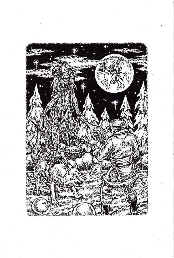 Иллюстрация Всеволода Мартыненко к повести "В поисках Лукоморья" (Stille nacht) для антологии "Лик зверя" .