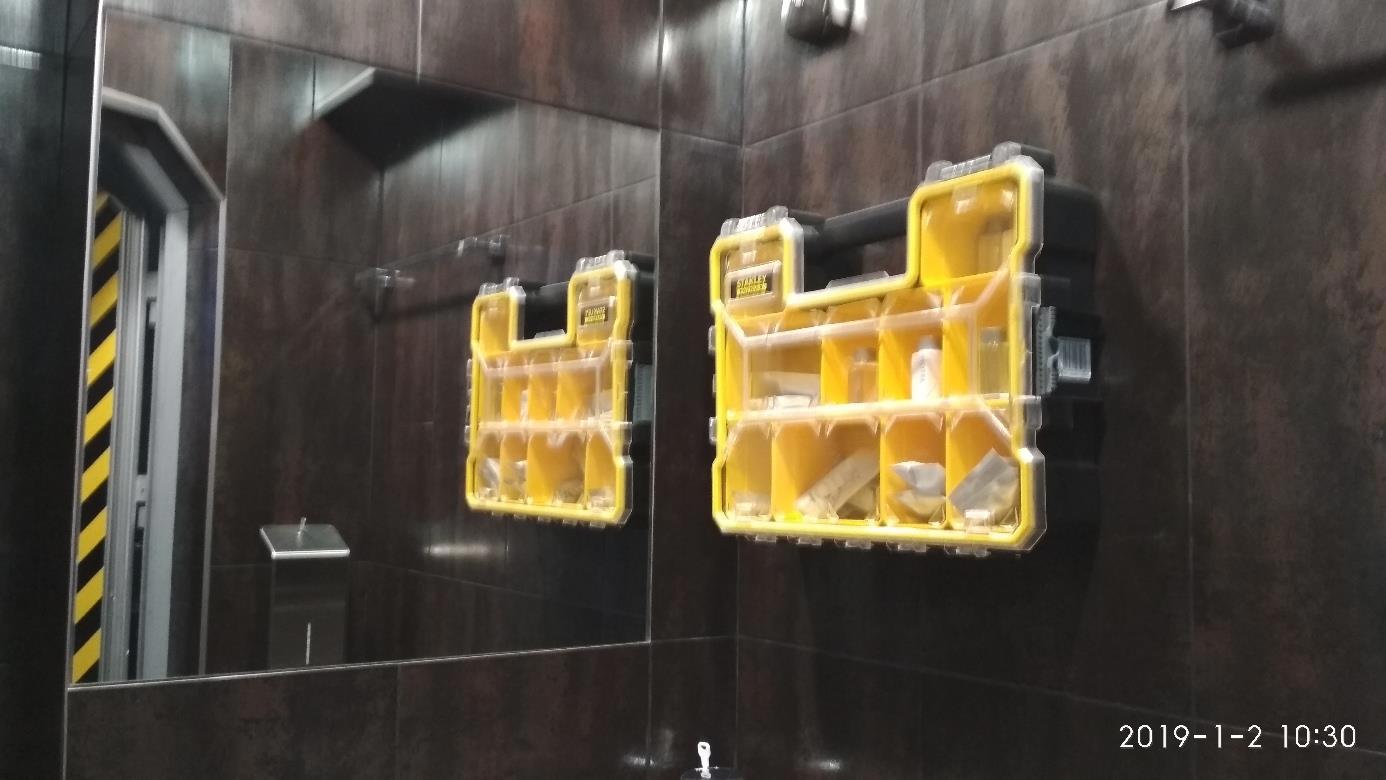 Полка с бритвенными принадлежностями, мыло, шампуни и т.д. Фото Галины Малышевой.