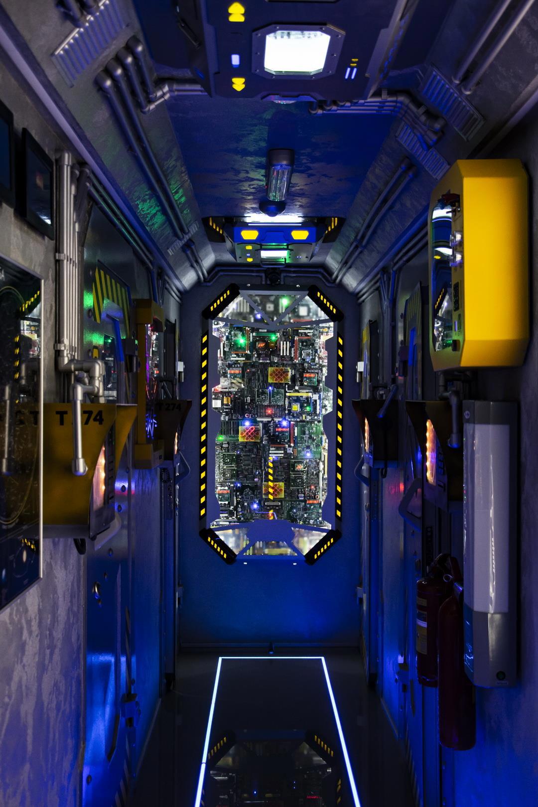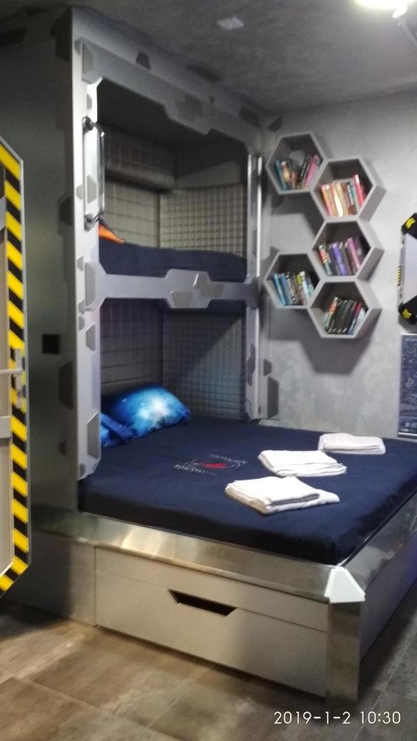 Для любителей посмотреть кино или полюбоваться видами космоса на стене напротив работают мониторы.