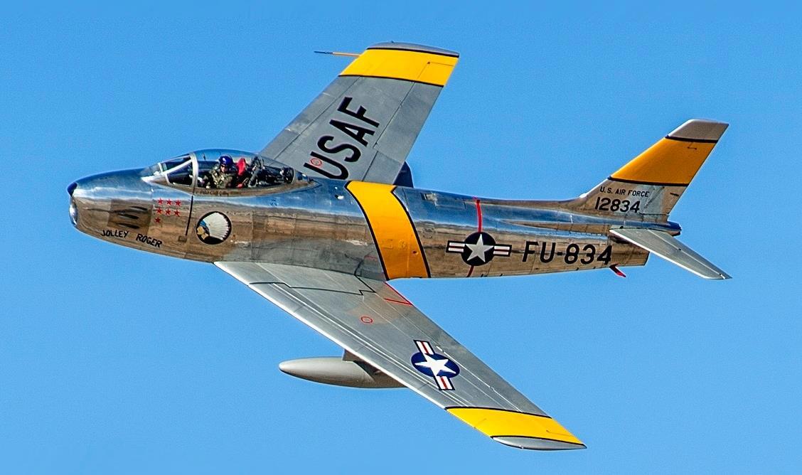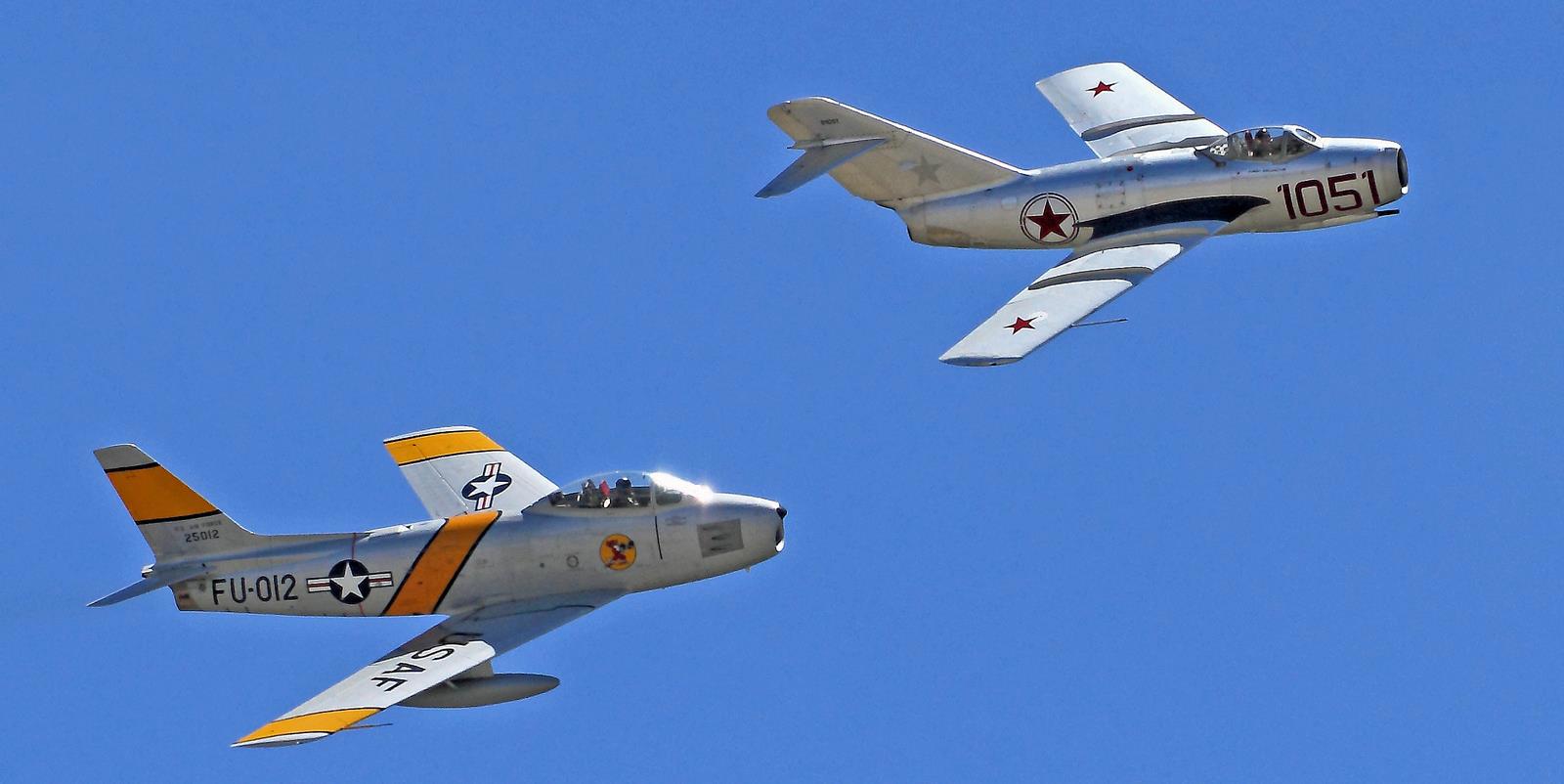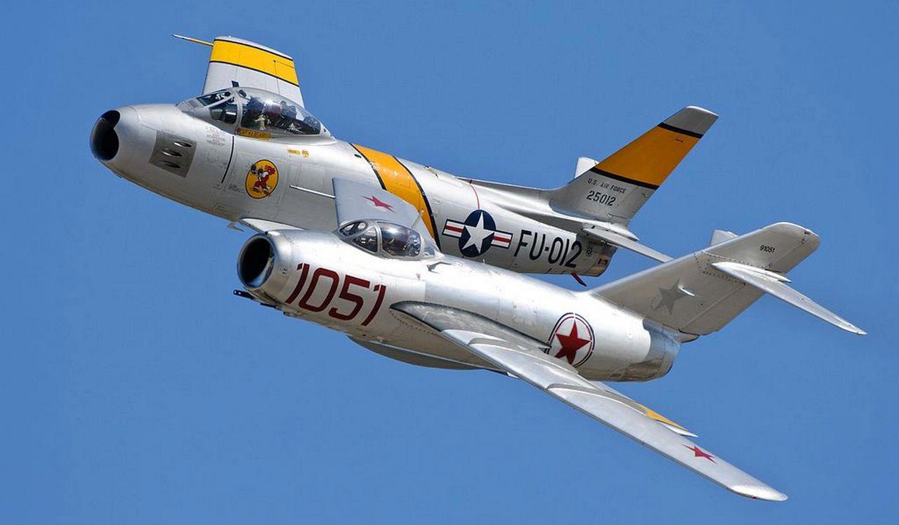 И они оказались ничем не хуже «самых-самых» сэшэашных машин. Да… было время, были великие люди и были великие машины. Сейчас «Сейбры» летают вместе с МиГ-15 на авиашоу: