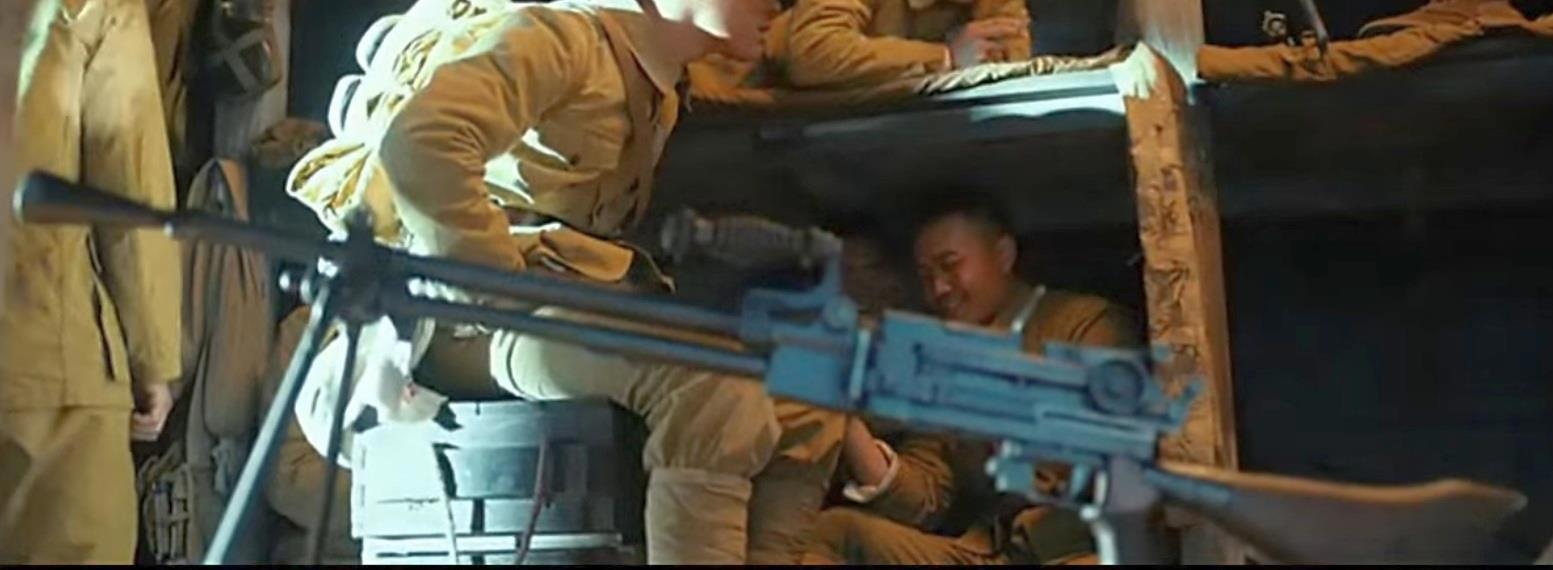 С пулемётами интереснее. Их китайские киношники показывают типа случайно, но достаточно часто, и я бы даже сказал «любовно». Вот такой пулемёт и это всё же не чешский, а именно японский «Намбу» (больно уж у него приклад характерный):