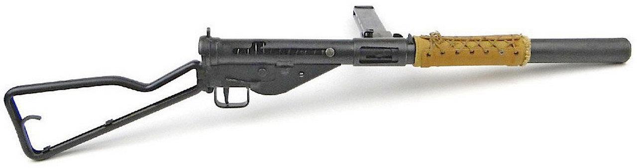 А вот боец с английским пистолетом-пулемётом «СТЭН»: