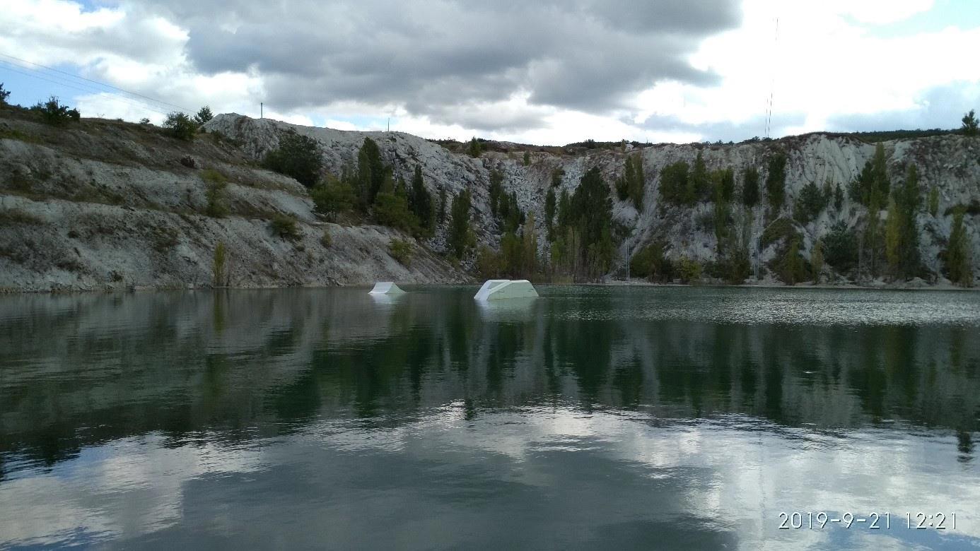 Может быть это называется как-то по другому, но честно скажу, не знаю как. Но над озером натянуты несколько тросов, поставлены трамплины и любители экстрима зацепившись за трос гоняют по водной глади, взлетают над водой с трамплинов и получают море удовольствия.