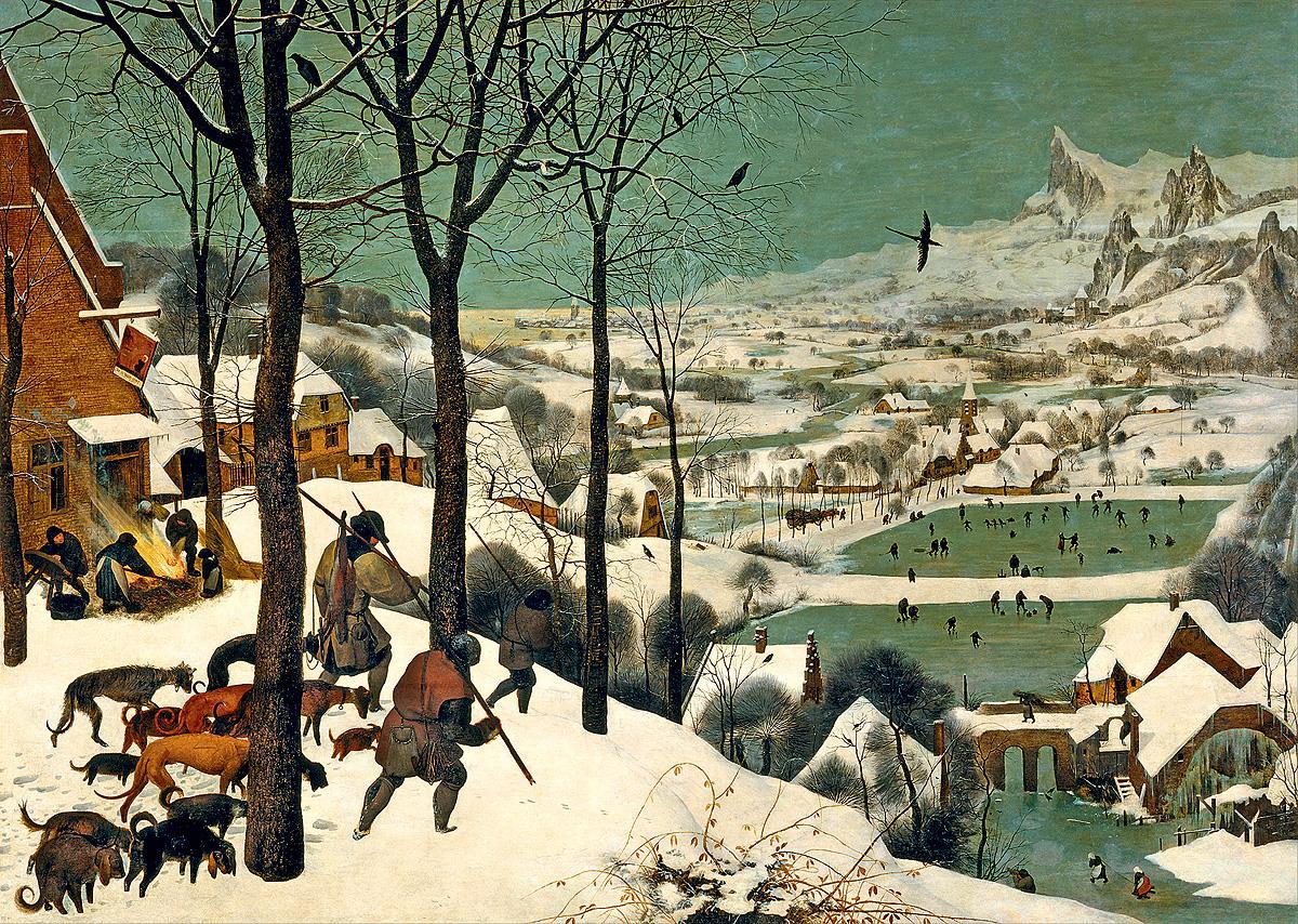 Картина Брейгеля "Охотники на снегу" как нельзя лучше передаёт атмосферу.