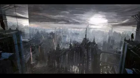 В выси высились местами небоскреб которые на удивления были укреплены магией, но время берет свое пусть плетения крепости были великолепны. Пока решил не углубляться в город и забраться повыше на небоскреб. Иногда думаю зачем то или иное действие совершаю так как с упором носорога шел на вершину которая уходила за облака. Сейчас наверное выше сотого этажа поднялся . Через разбитые стекла виднелись пару других небоскребов возвышавшихся над облаками. Как не странно тут был двойной слой облаков выше вторых облаков было только второе здание на востоке. Прям гигантомания какаета подумал я устало привалившись к стене.