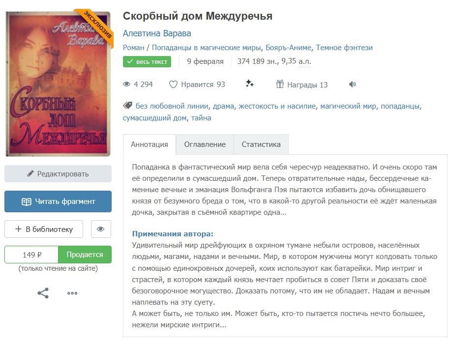 Автор: Алевтина ВараваМежду двух рек охряного тумана небыли плавают острова, населённые людьми, магами, надами и вечными. Это мир, в котором мужчины расы людей могут колдовать только с помощью единокровных дочерей, коих используют как батарейки. Мир интриг и страстей, в котором каждый князь мечтает пробиться в совет Пяти и доказать своё безоговорочное могущество. Доказать потому, что им не обладает.